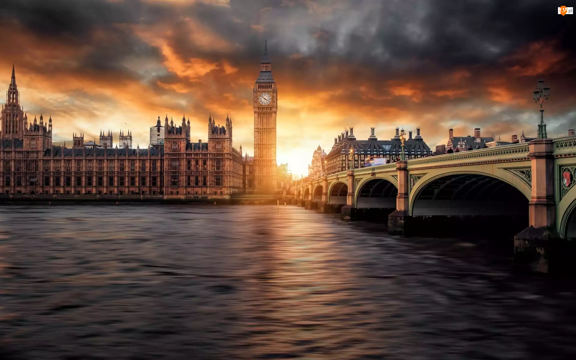 Rzeka Tamiza, Big Ben, Anglia, Zachód Słońca, L