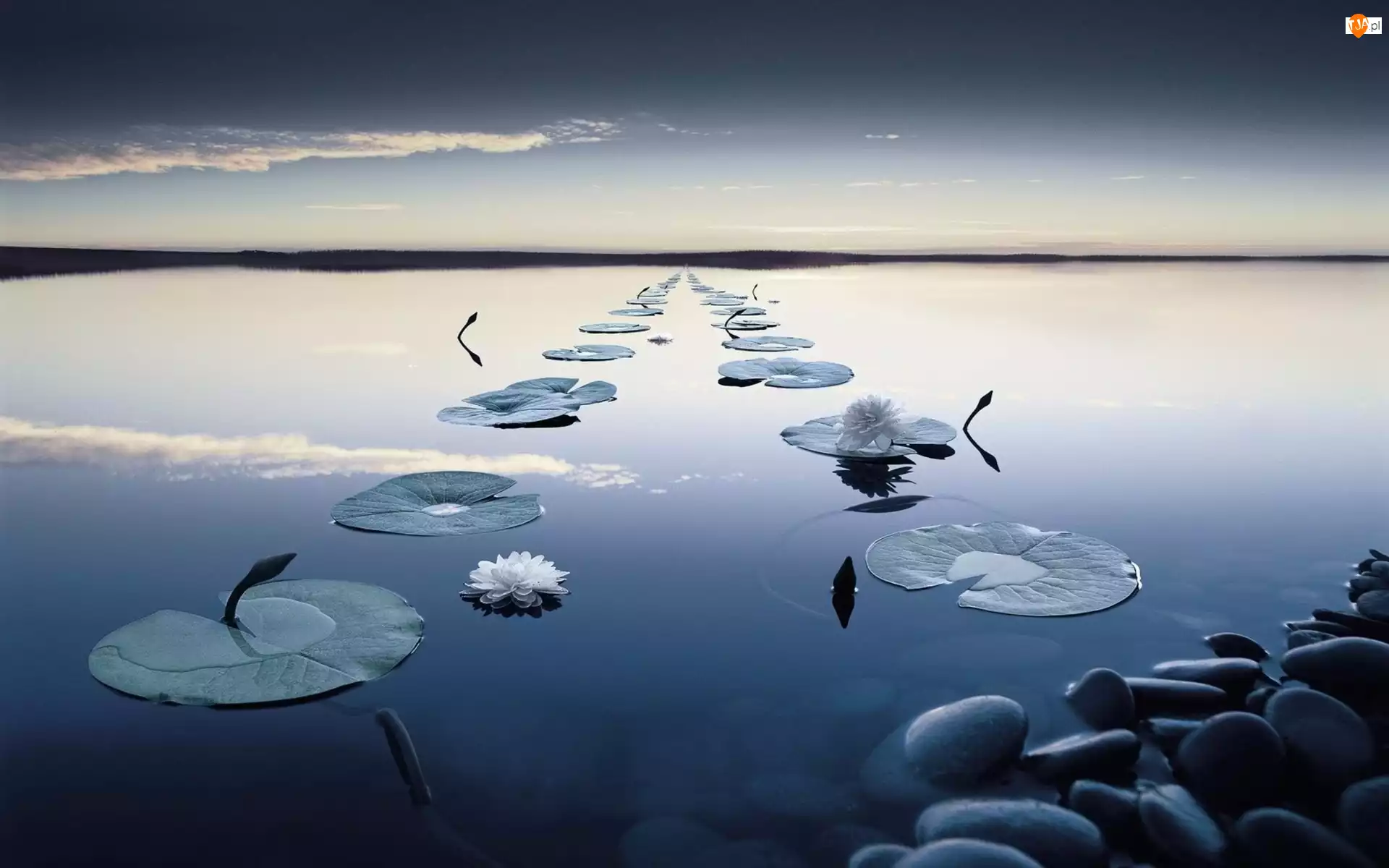 Wodne, Rzeka, Kamienie, Lilie