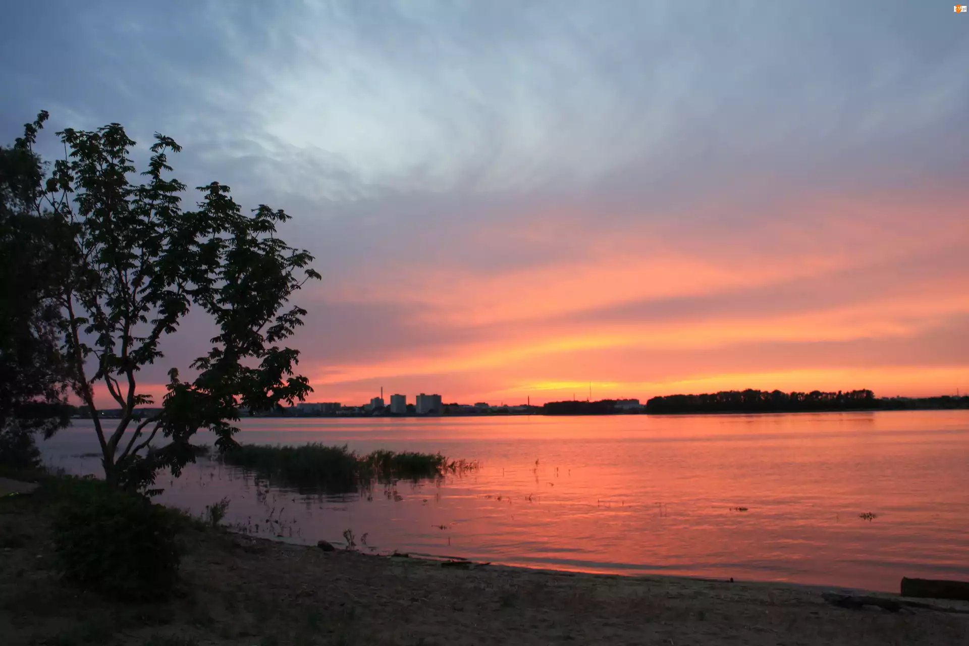 Rzeka, Zachód Słońca, Drzewo
