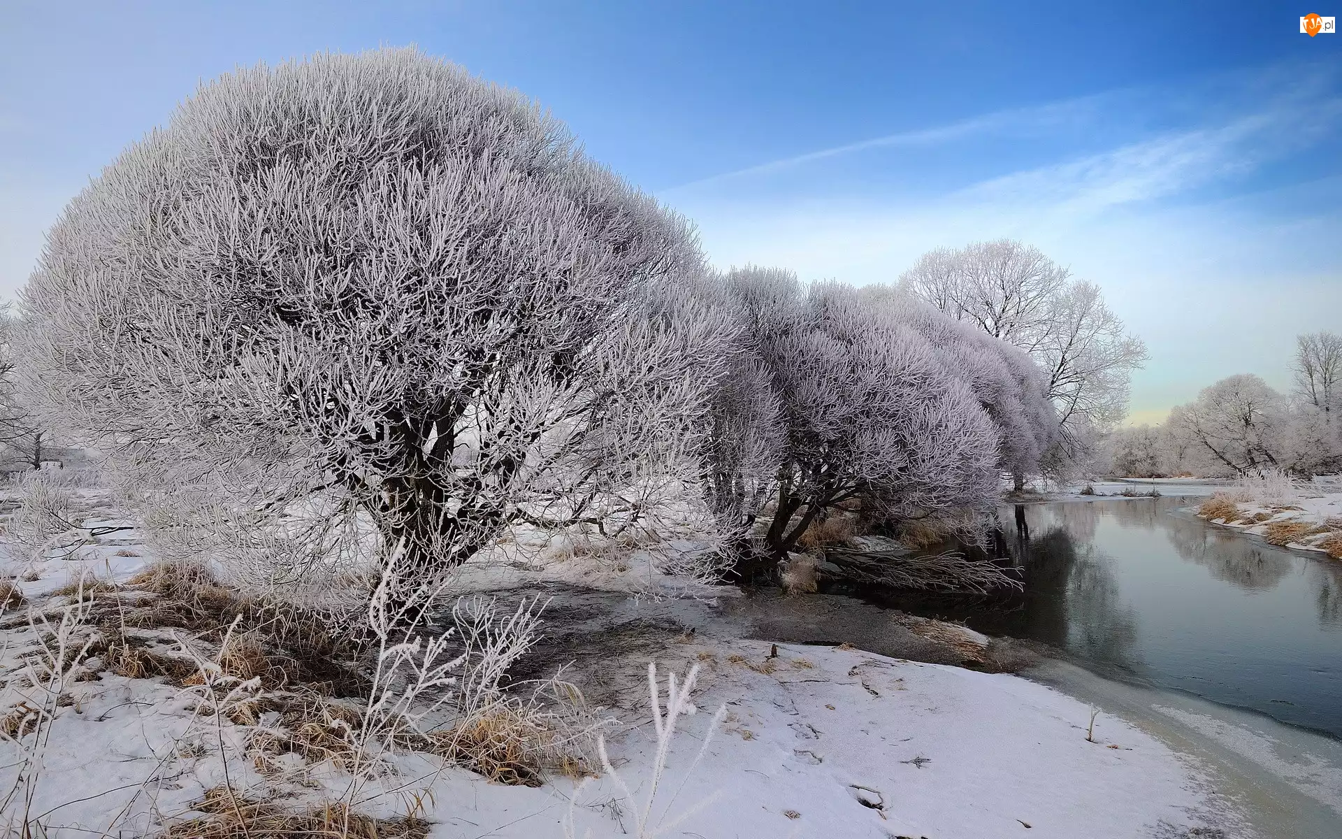 Rzeka, Zima, Pola, Drzewa