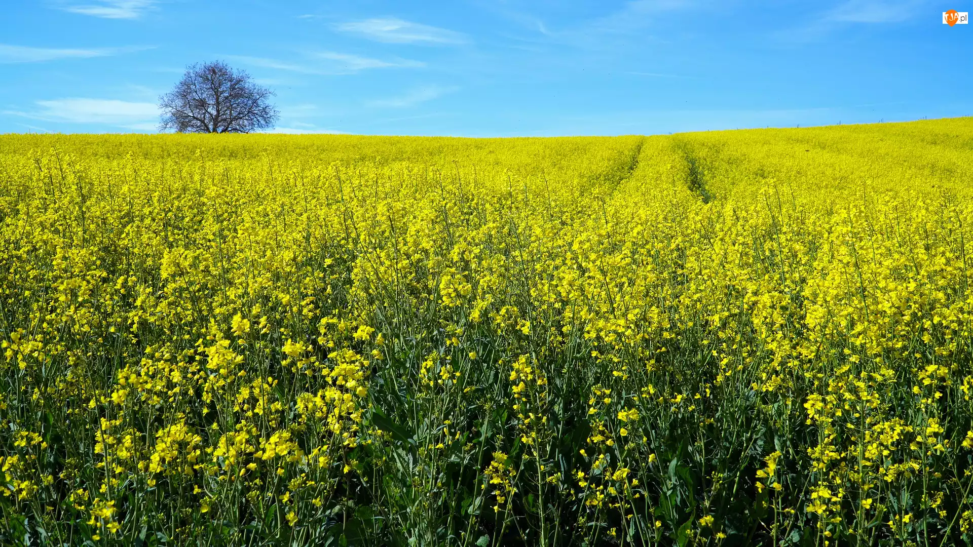 Rzepak, Niebo, Pole, Lato, Drzewo