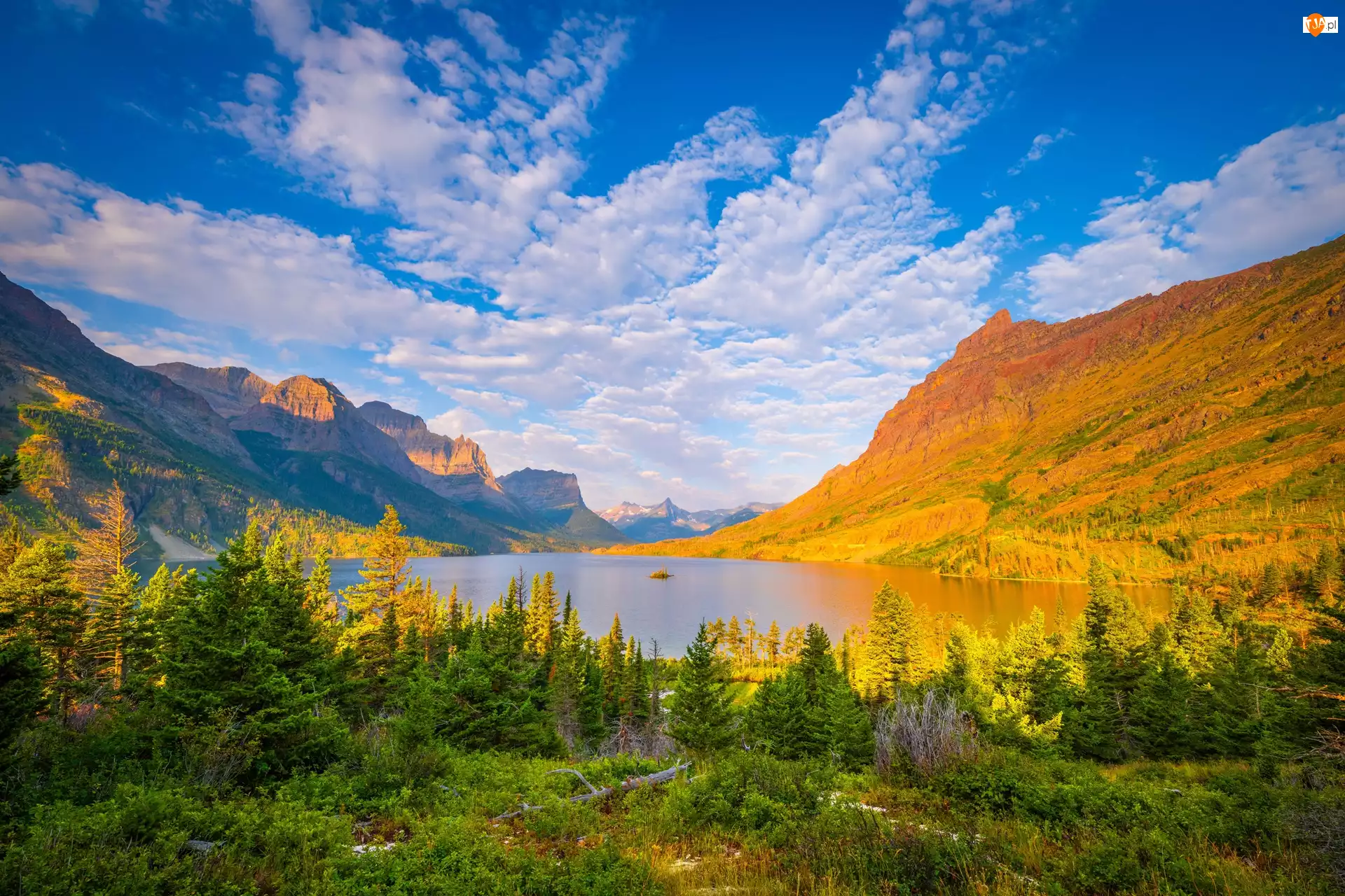 Saint Mary Lake, Jezioro, Park Narodowy Glacier, S