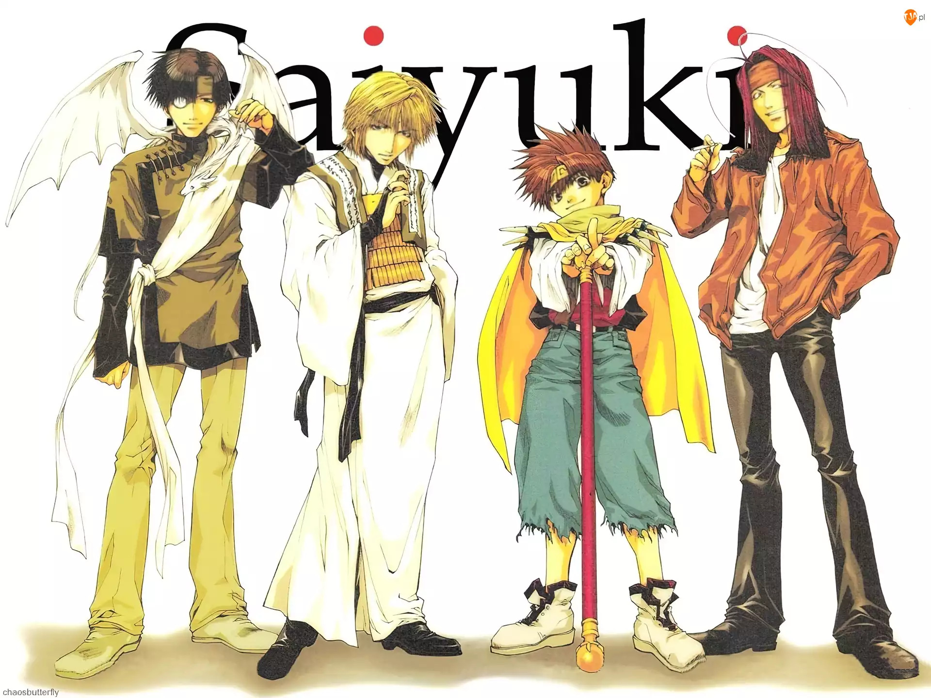 Saiyuki, kij, napis, ludzie