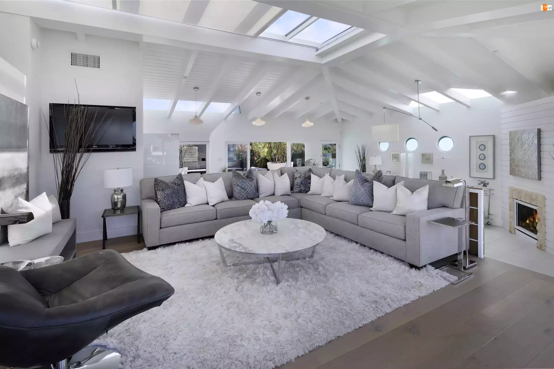 Kominek, Poduszki, Salon, Dywan, Kominek, Kanapa