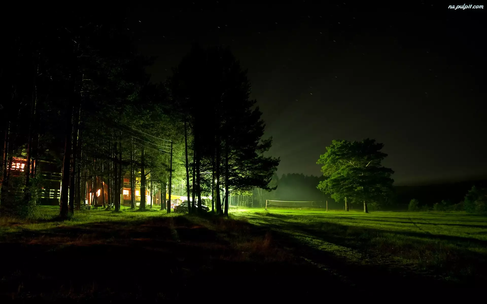 Samochody, Ośrodek, Boisko, Wypoczynkowy, Drzewa
