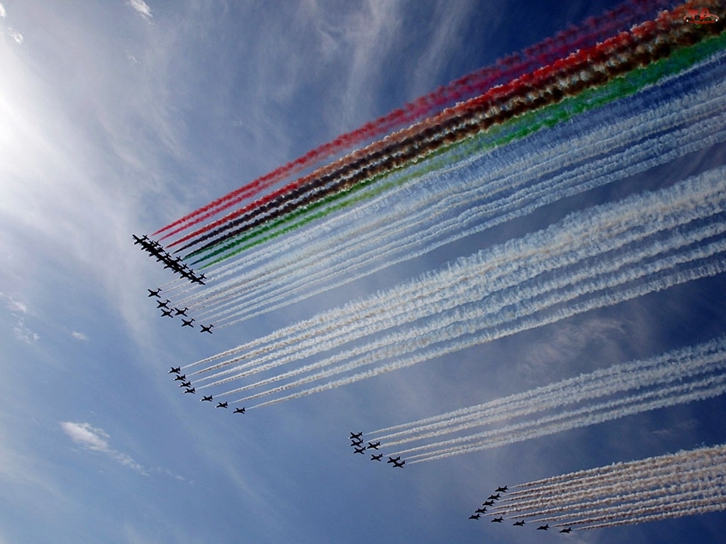Samoloty, Pokaz, Kolorowy, Dym