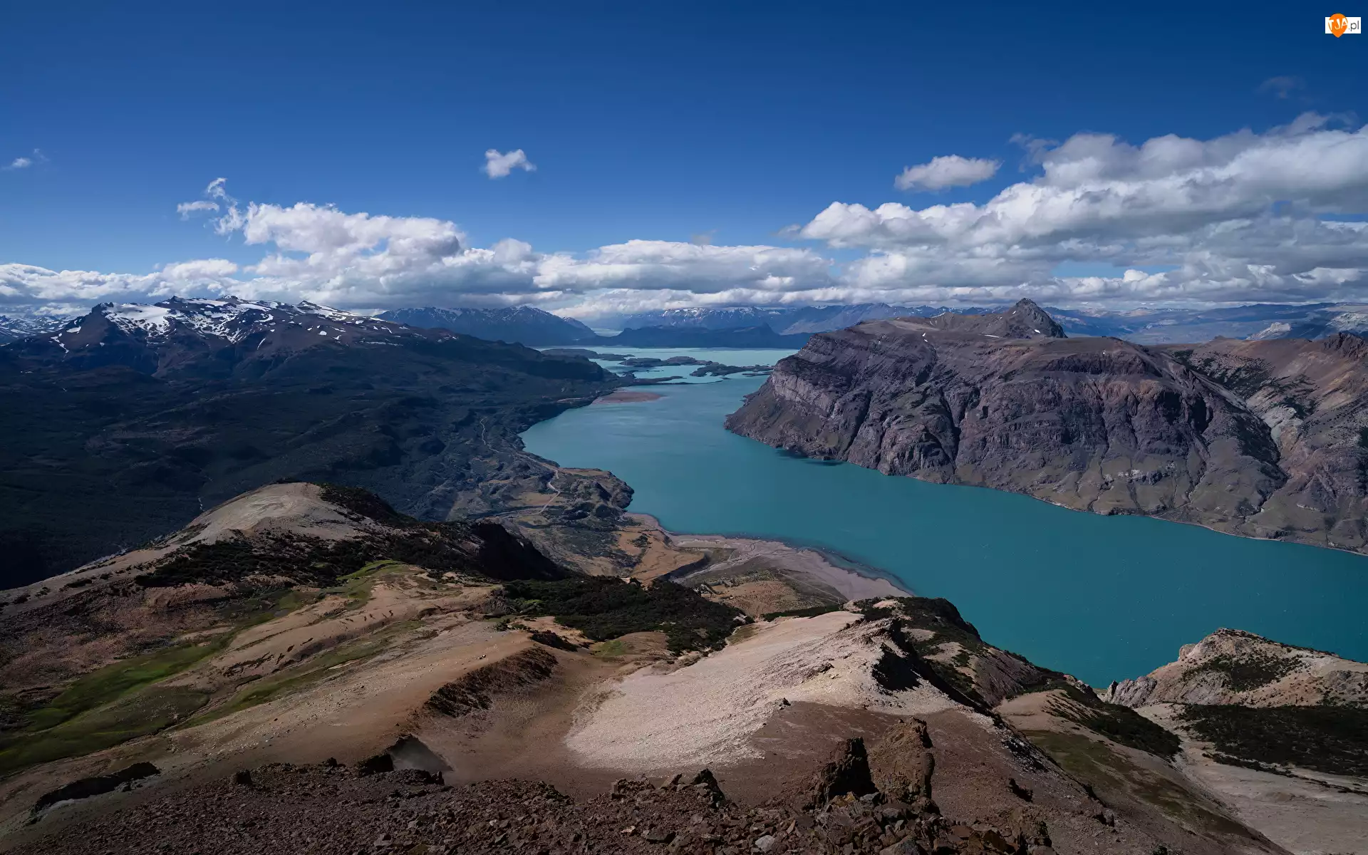 San Martin Lago, Argentyna, Andy Patagońskie, Niebo, Patagonia, Jezioro, Chmury, Góry