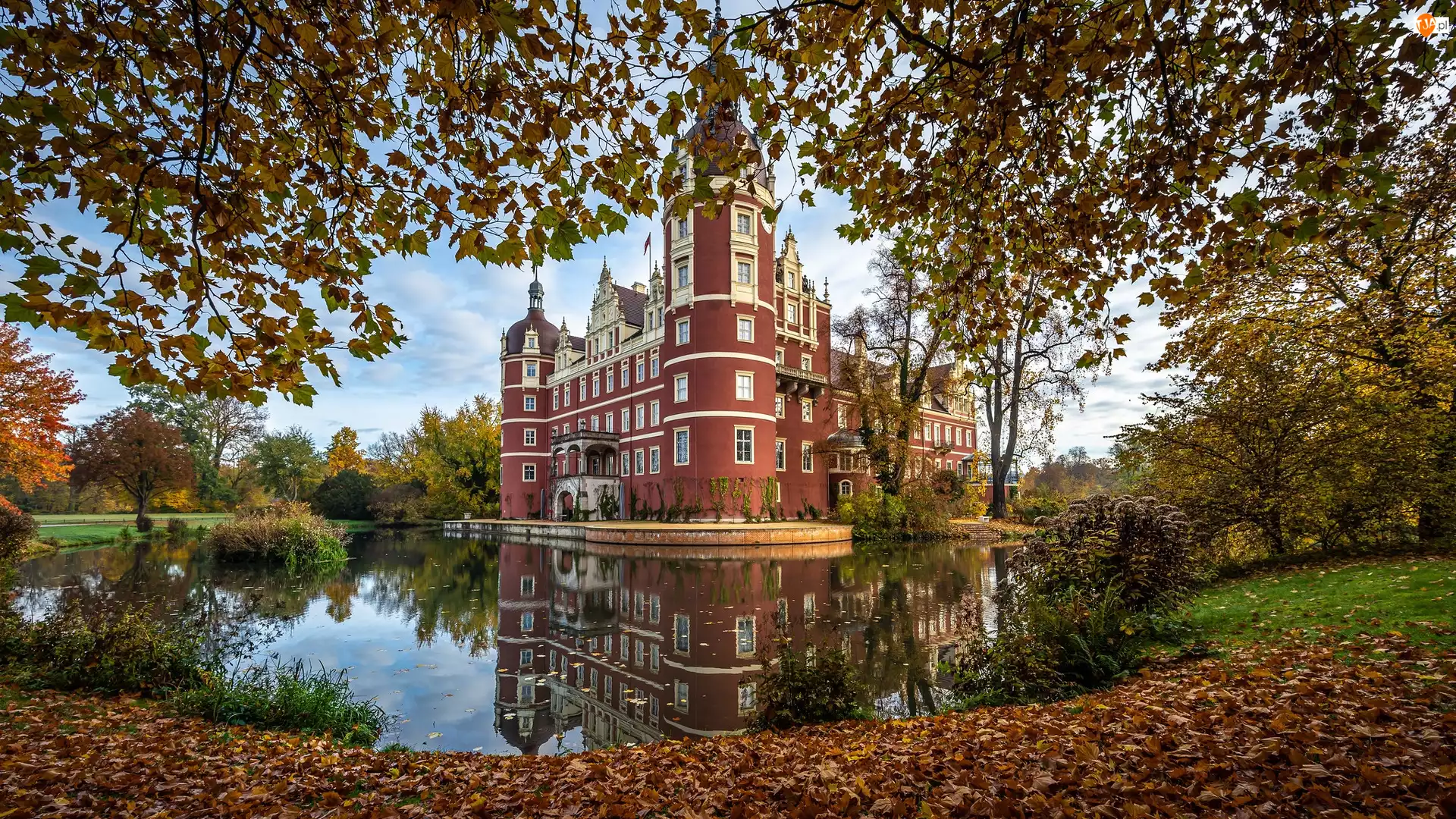 Schloss Muskau, Zamek w Mużakowie, Park Mużakowski, Niemcy, Staw, Mużaków