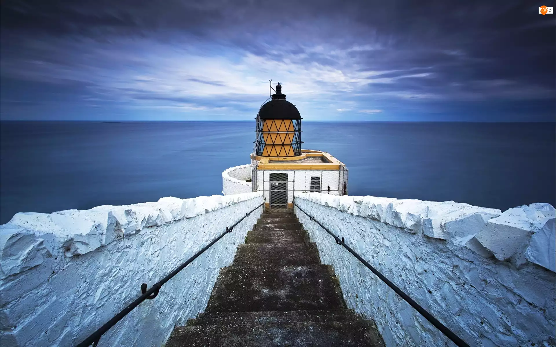 Horyzont, Latarnia morska, Morze, Szkocja, Schody