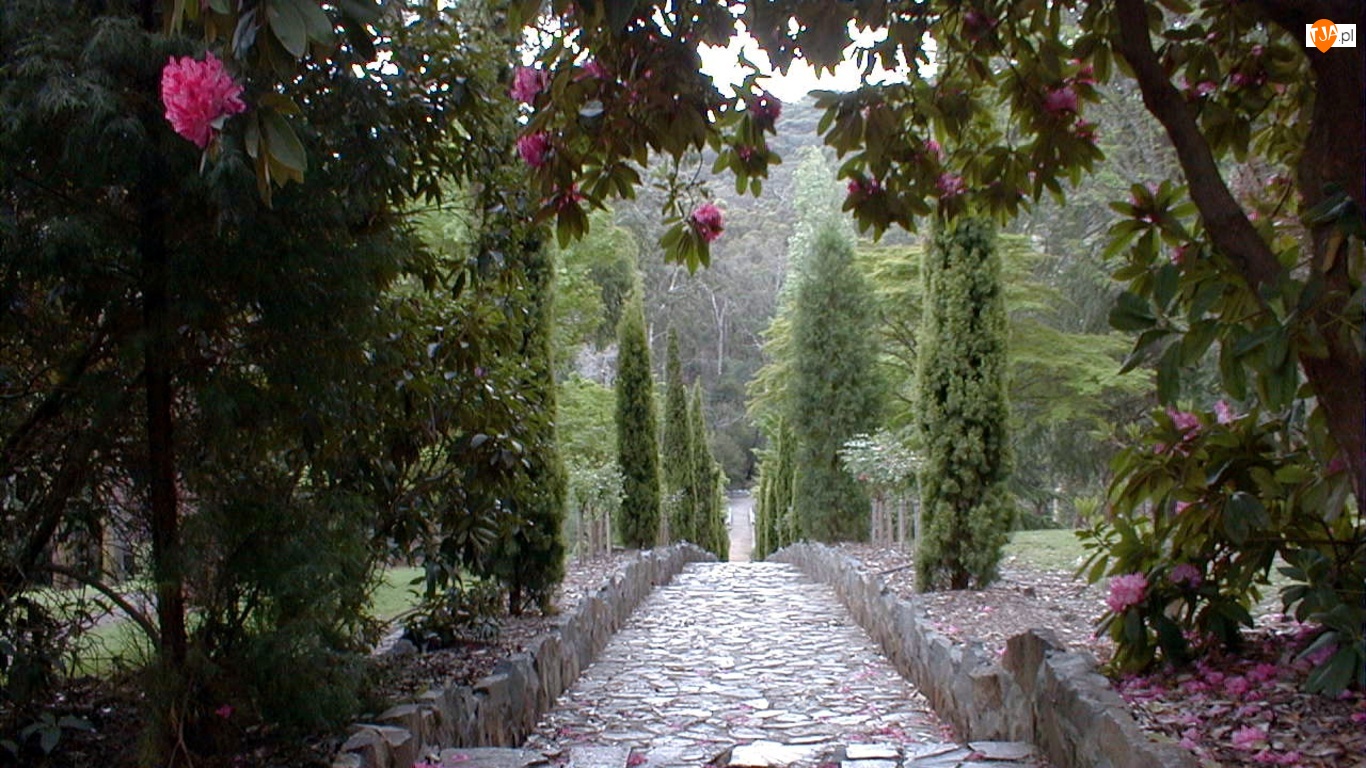 Drzewo, Schody, Kwitnące, Iglaki, Kamienne