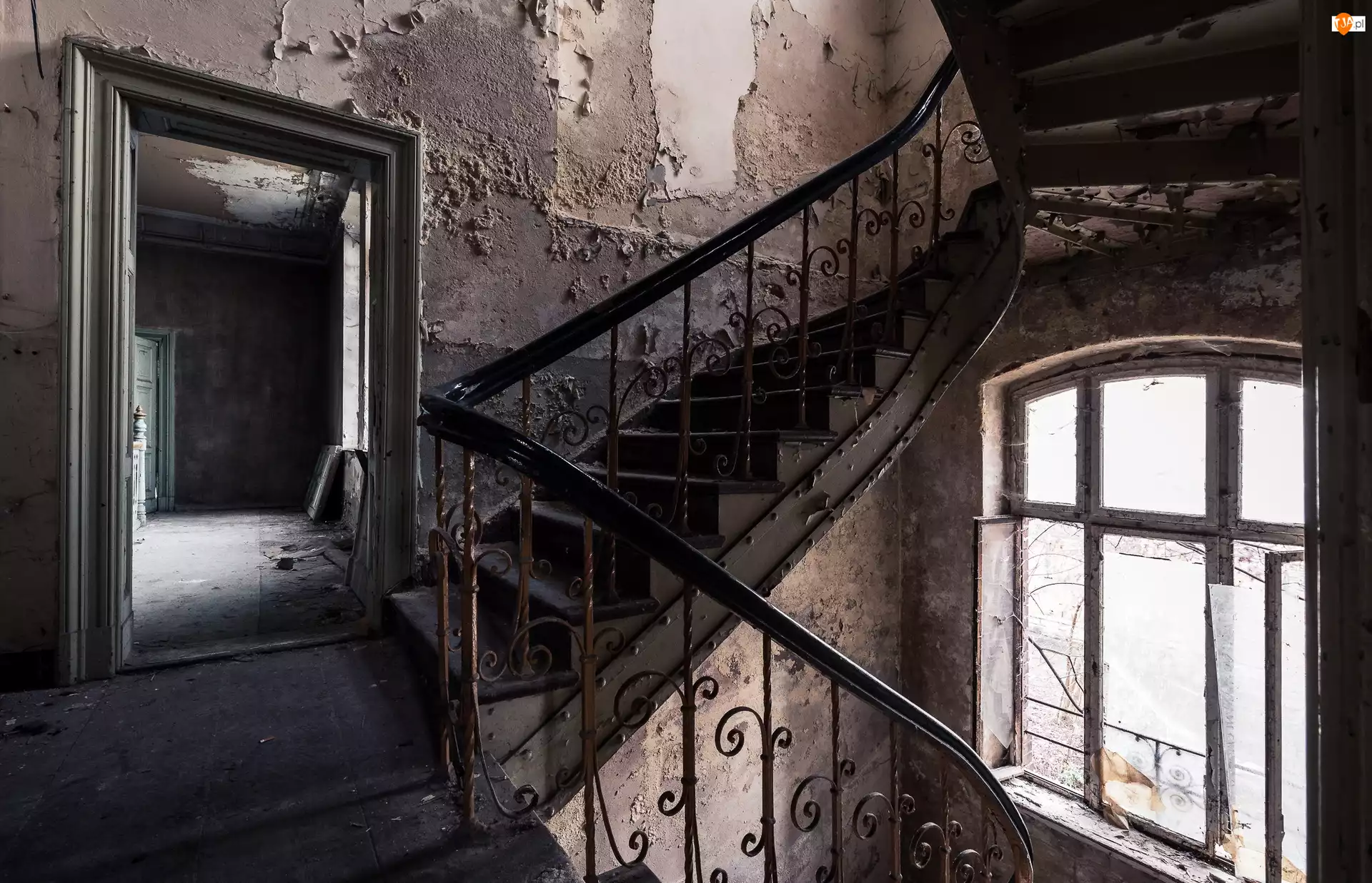 Schody, Okno, Klatka schodowa, Zaniedbana, Balustrada
