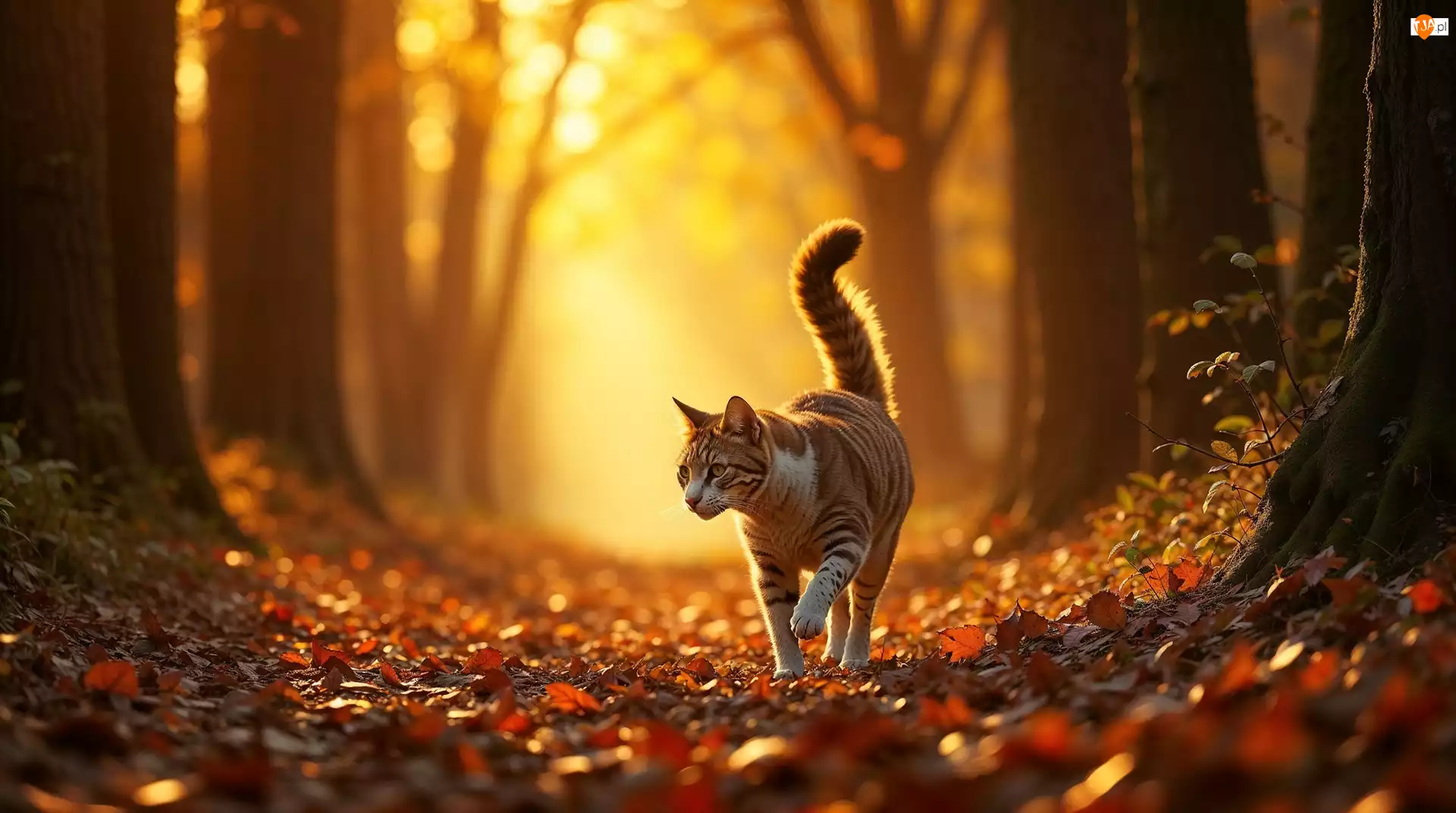 Ścieżka, Grafika AI, Las, Kot, Jesień