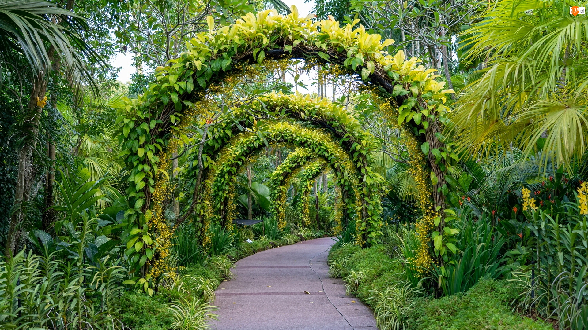 Zielone, Park, Łuki, Ścieżka, Rośliny