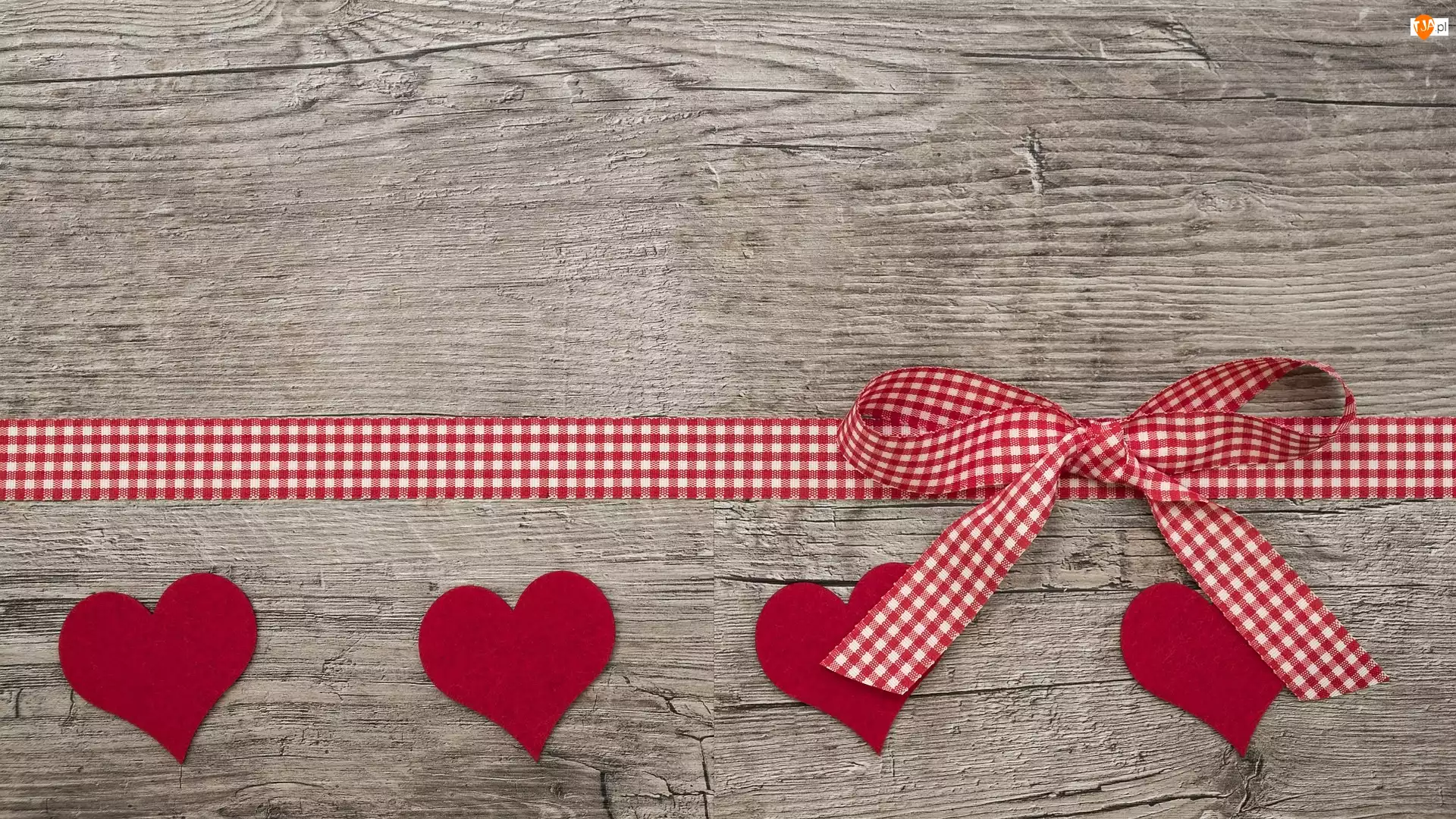 Miłość, Deski, Serduszka, Czerwone, Kokardka