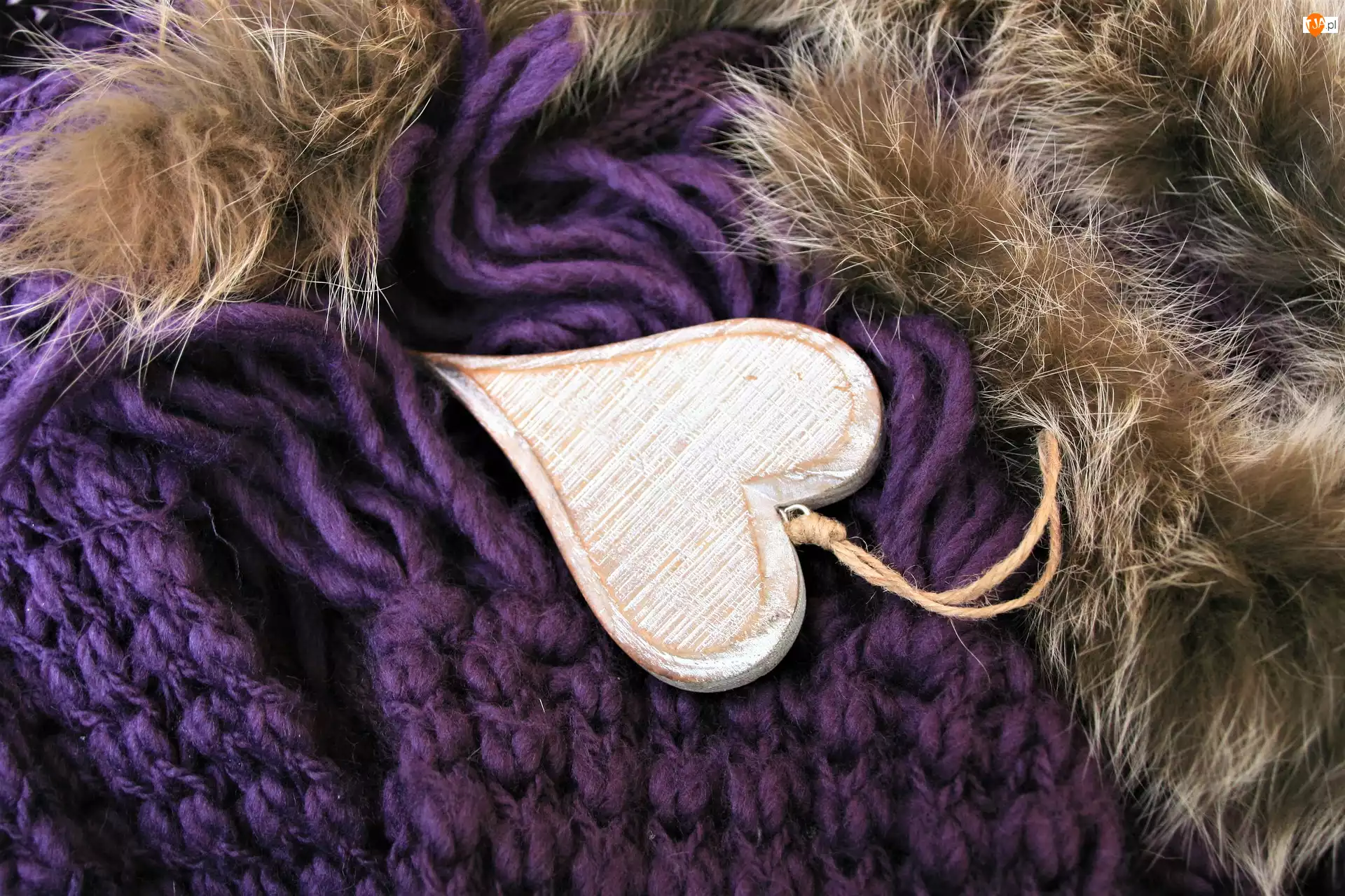 Fioletowy, Futerko, Zawieszka, Serduszko, Szalik