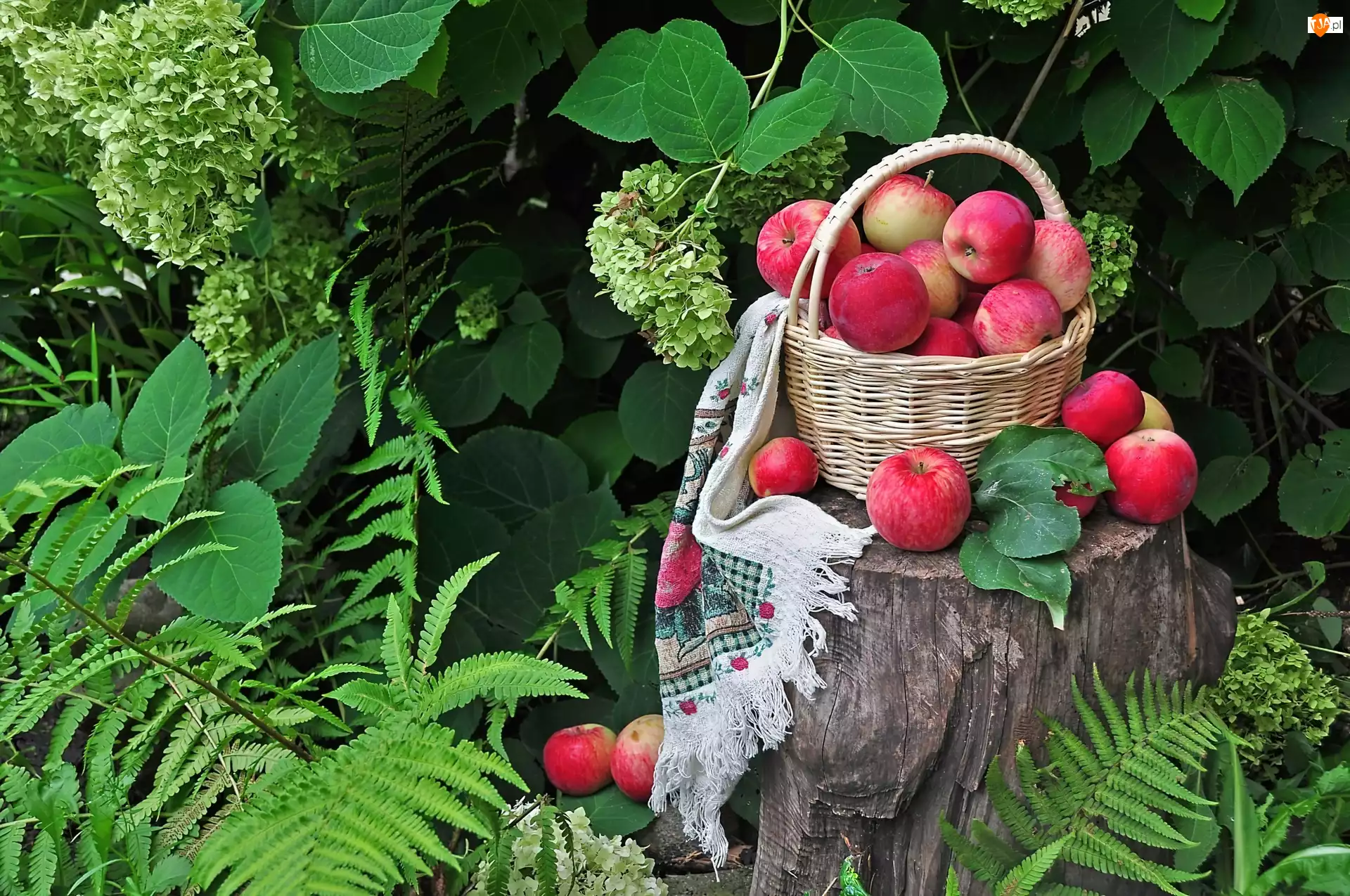 Serweta, Czerwone, Wiklinowy, Jabłka, Koszyk
