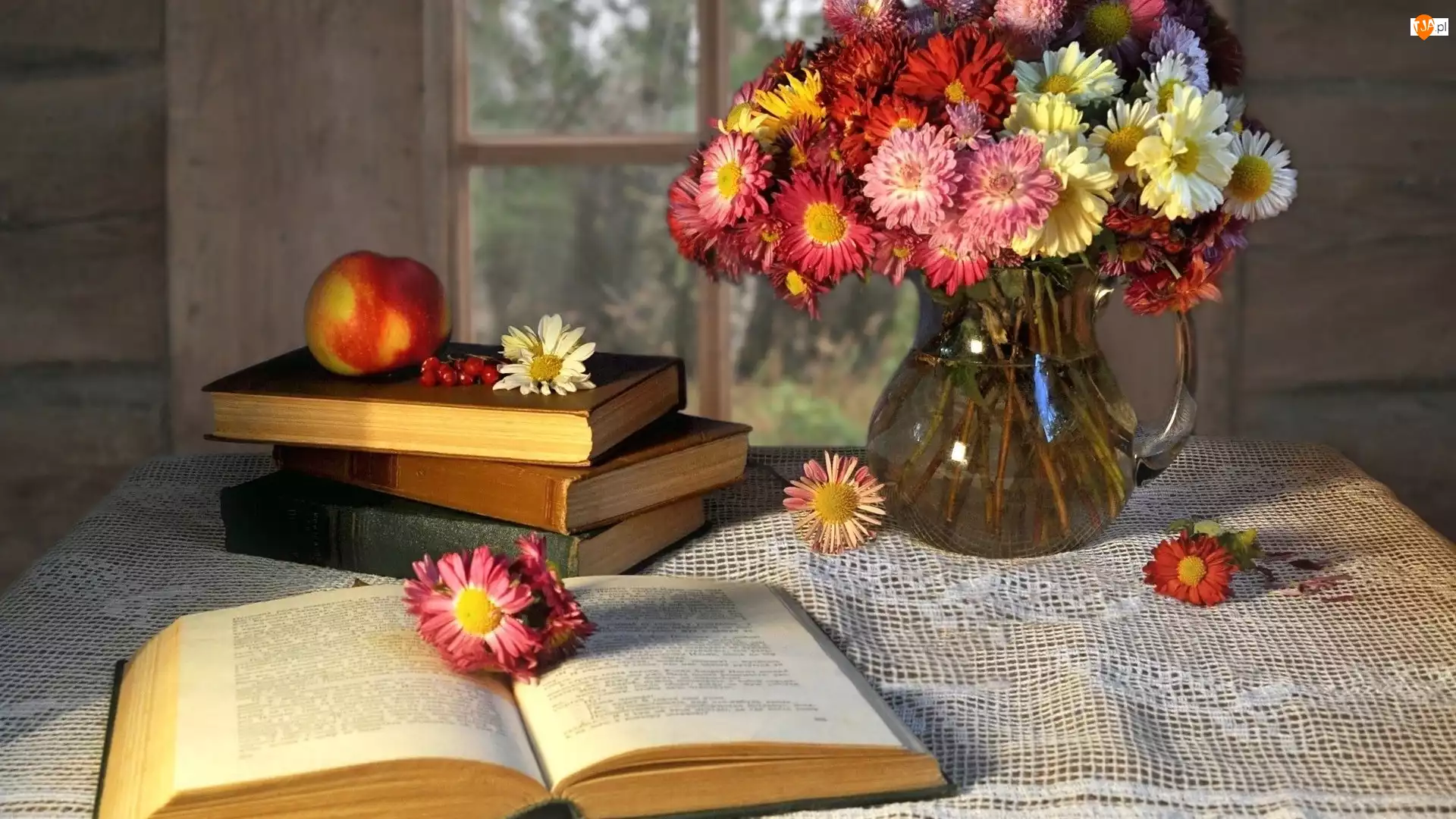 Serweta, Książki, Kwiatów, Bukiet, Wazon