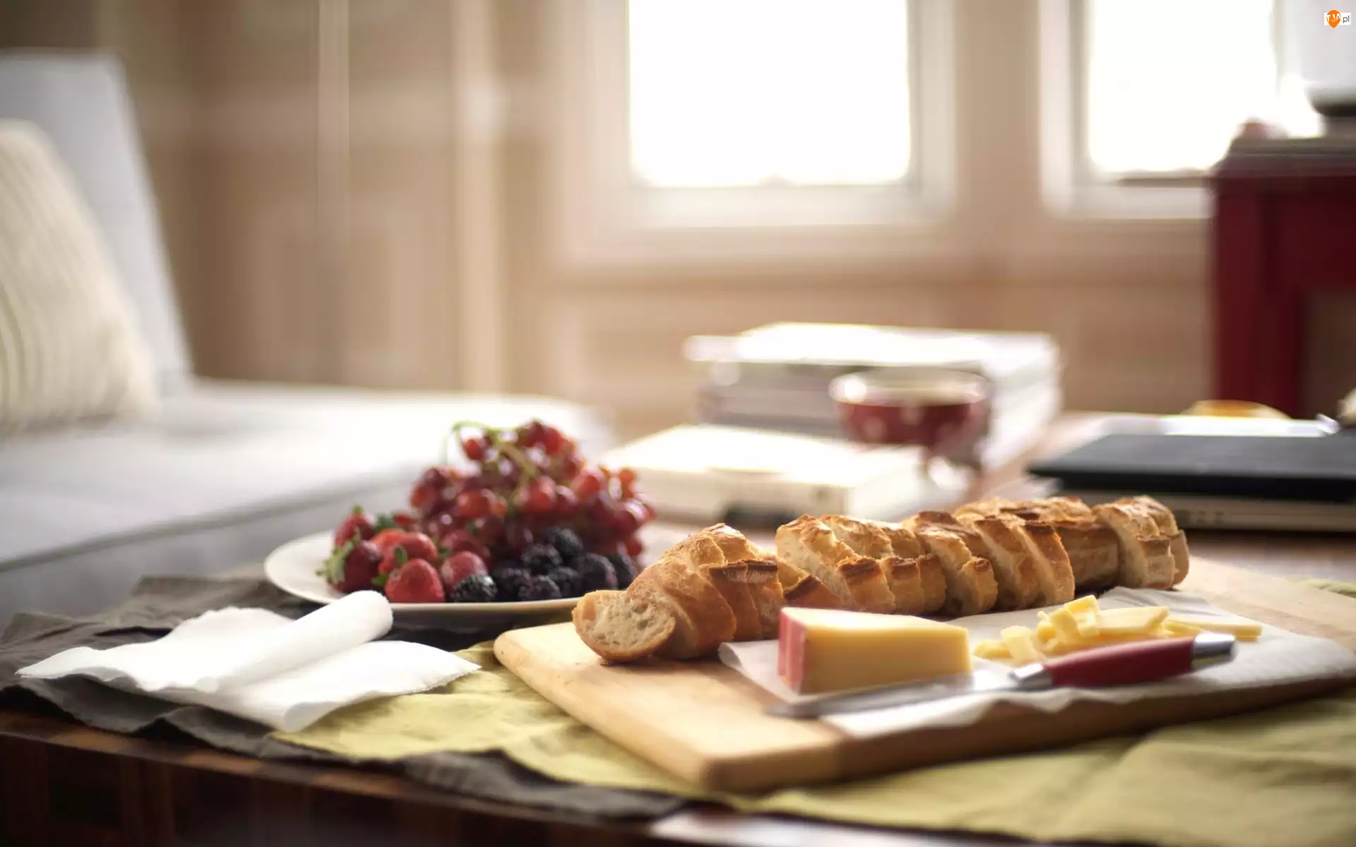 Serwetki, Śniadanie, Ser, Chleb, Owoce