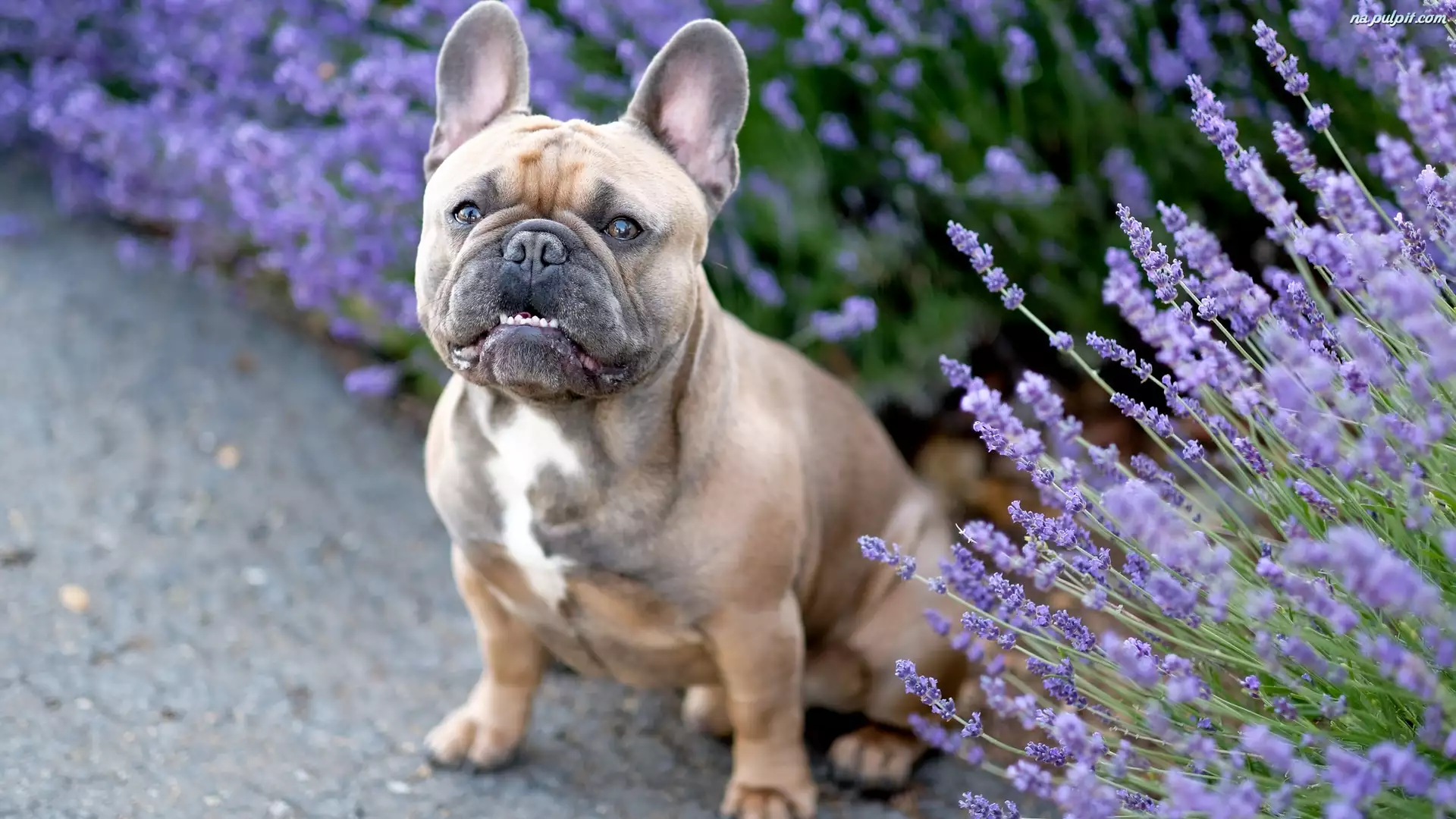 Lawenda, Pies, Siedzacy, Buldog francuski
