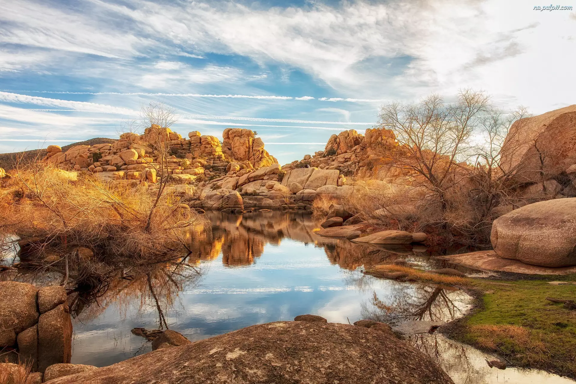 Skały, Jezioro, Głazy, Kamienie, Drzewa
