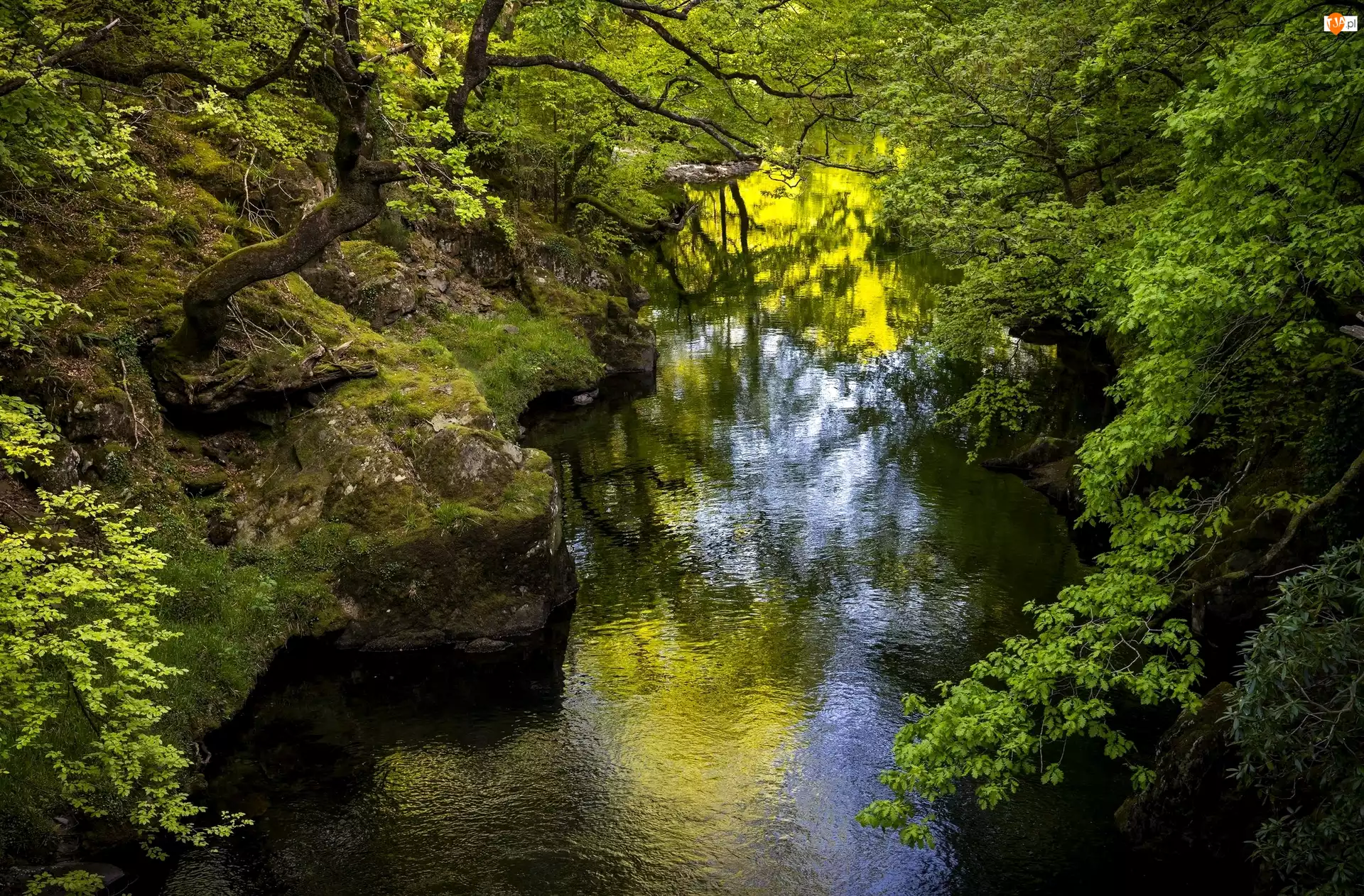 Skały, Roślinność, Rzeka, Las, Drzewa