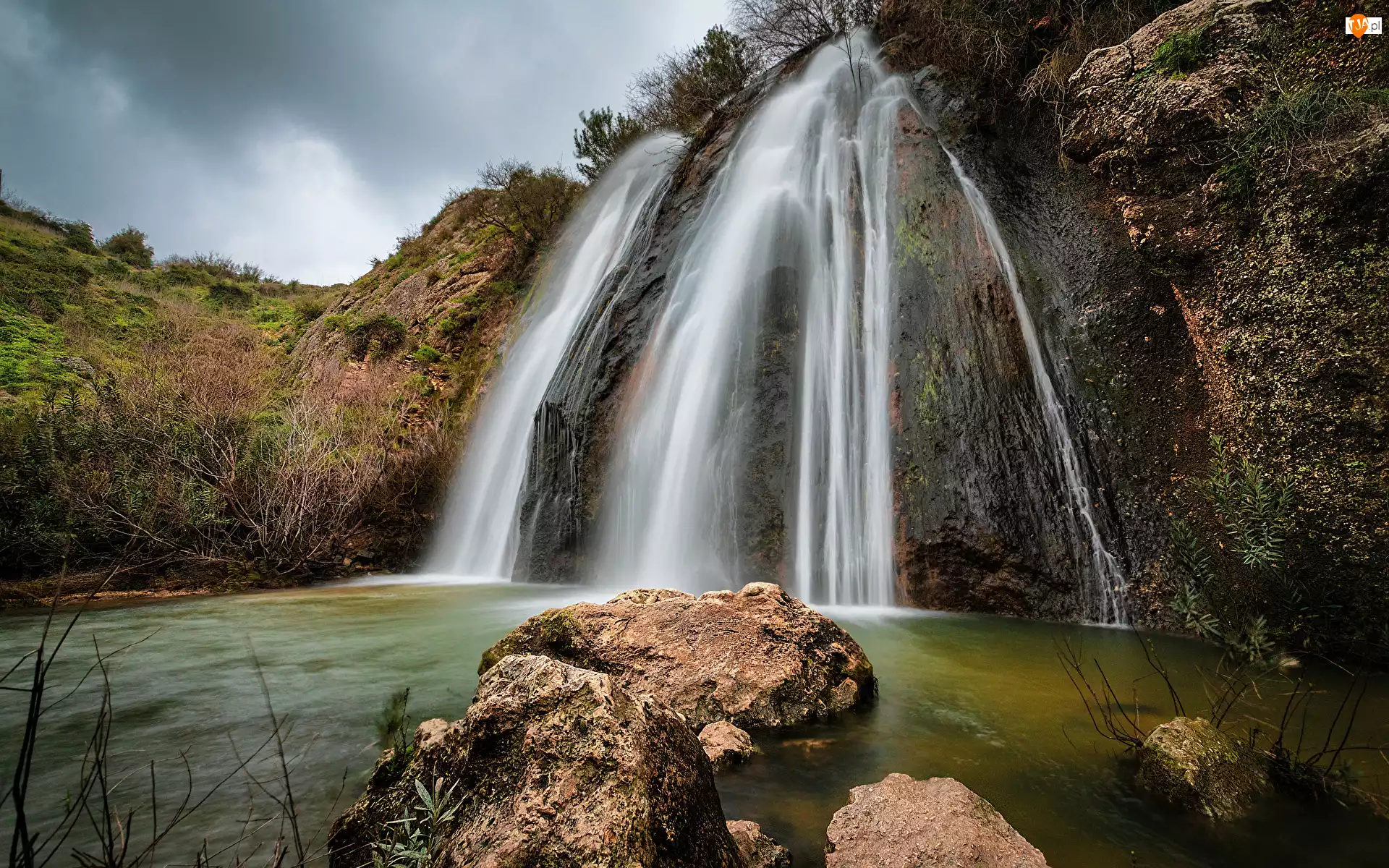 Skały, Rośliny, Omszałe, Wodospad, Kamienie