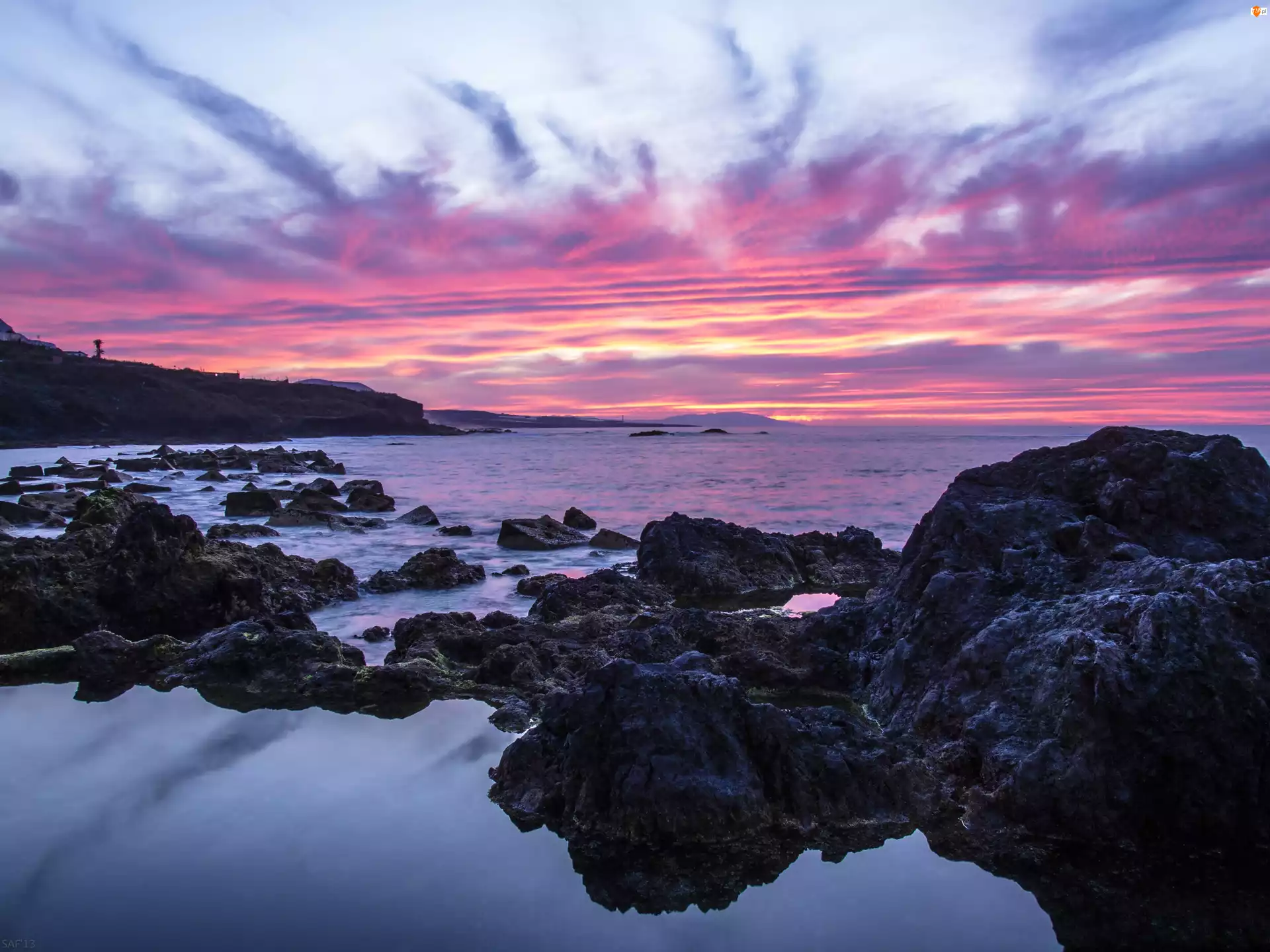 Skały, Słońca, Morze, Wschód