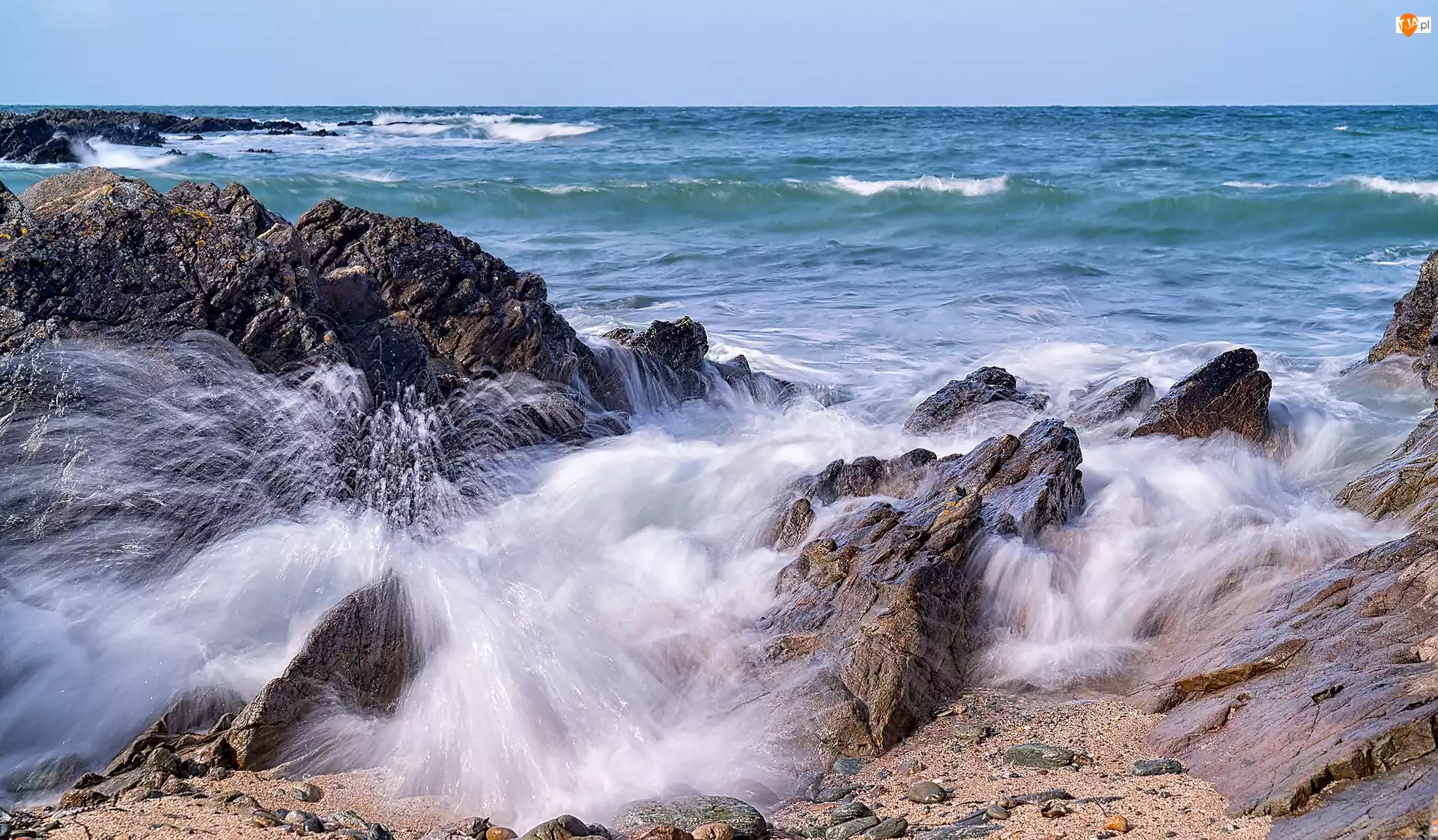 Walia, Wielka Brytania, Morze Irlandzkie, Fale, Hrabstwo Anglesey, Skały