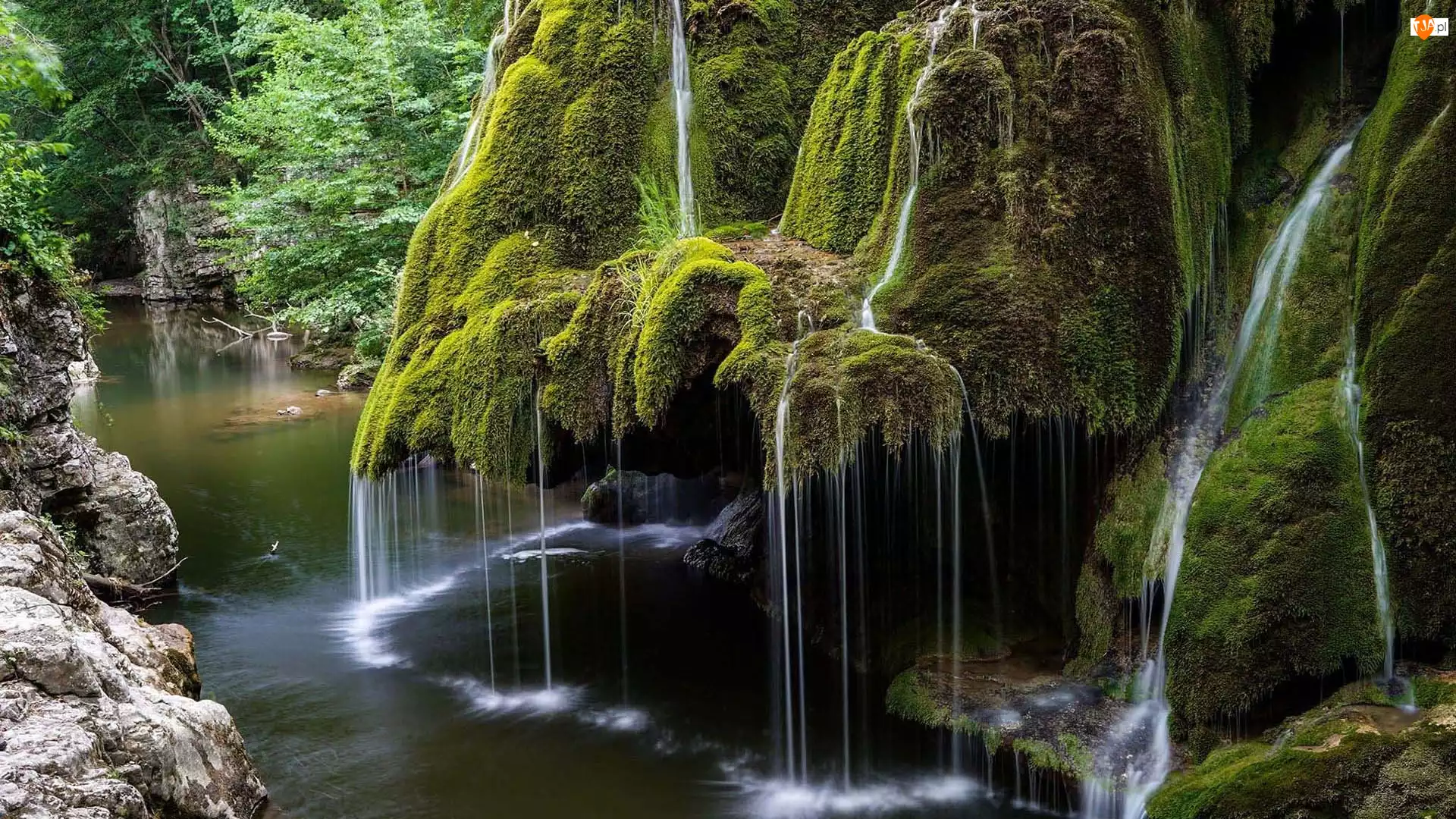 Skały, Wodospad, Rumunia, Omszałe, Minis River,