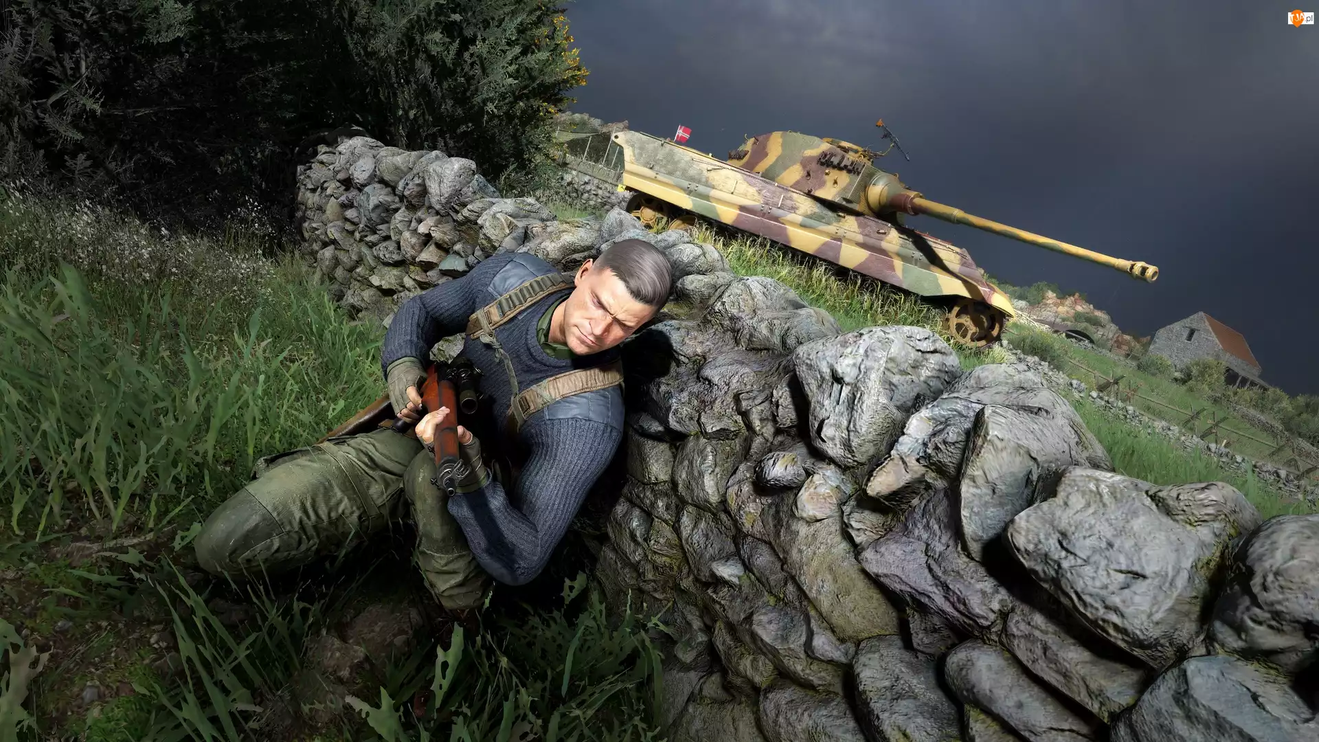 Snajper, Kamienny, Sniper Elite 5, Mężczyzna, Gra, Czołg, Mur