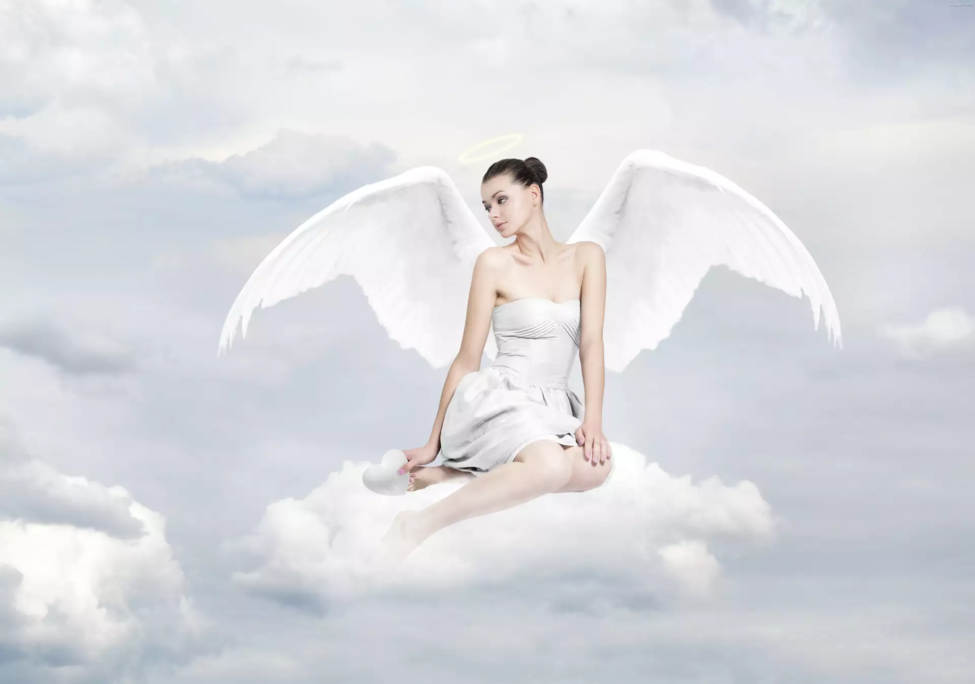 Skrzydła, Niebo, Kobieta, Chmury, Anioł, Serce
