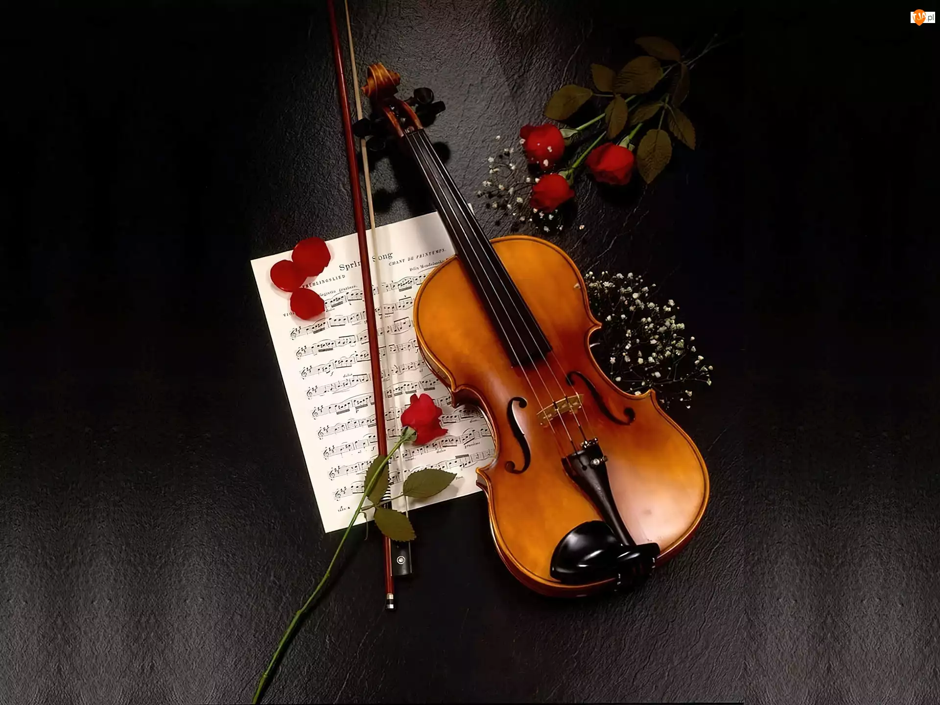 Skrzypce, Kwiaty, Nuty, Smyczek