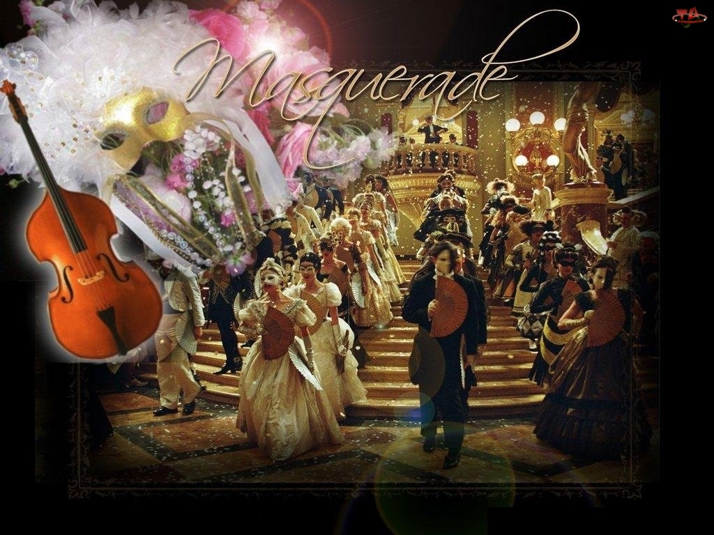 skrzypce, Phantom Of The Opera, maski, bal, postacie