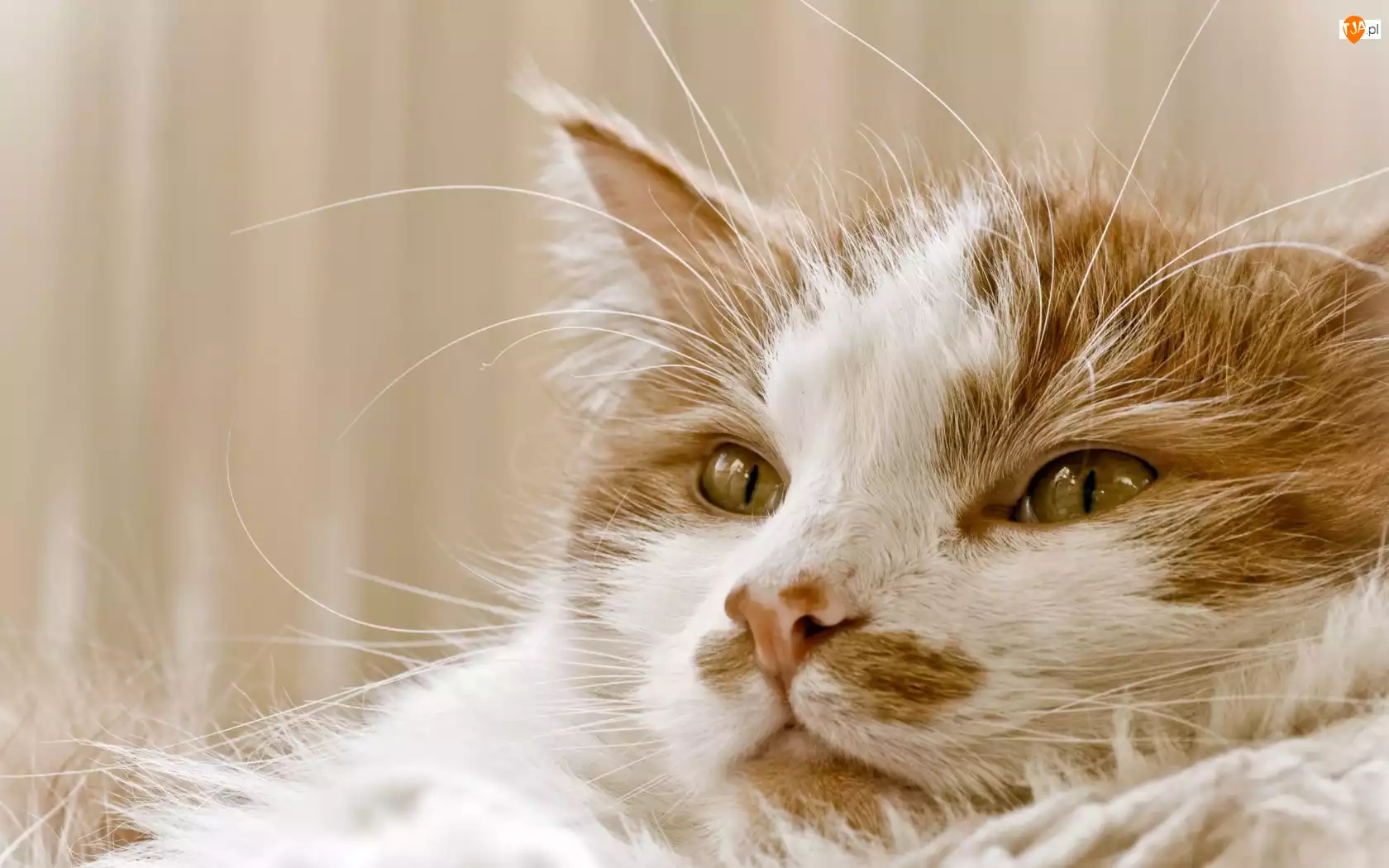 Słodki, Wąsy, Rudo, Portret, Biały, Kotek