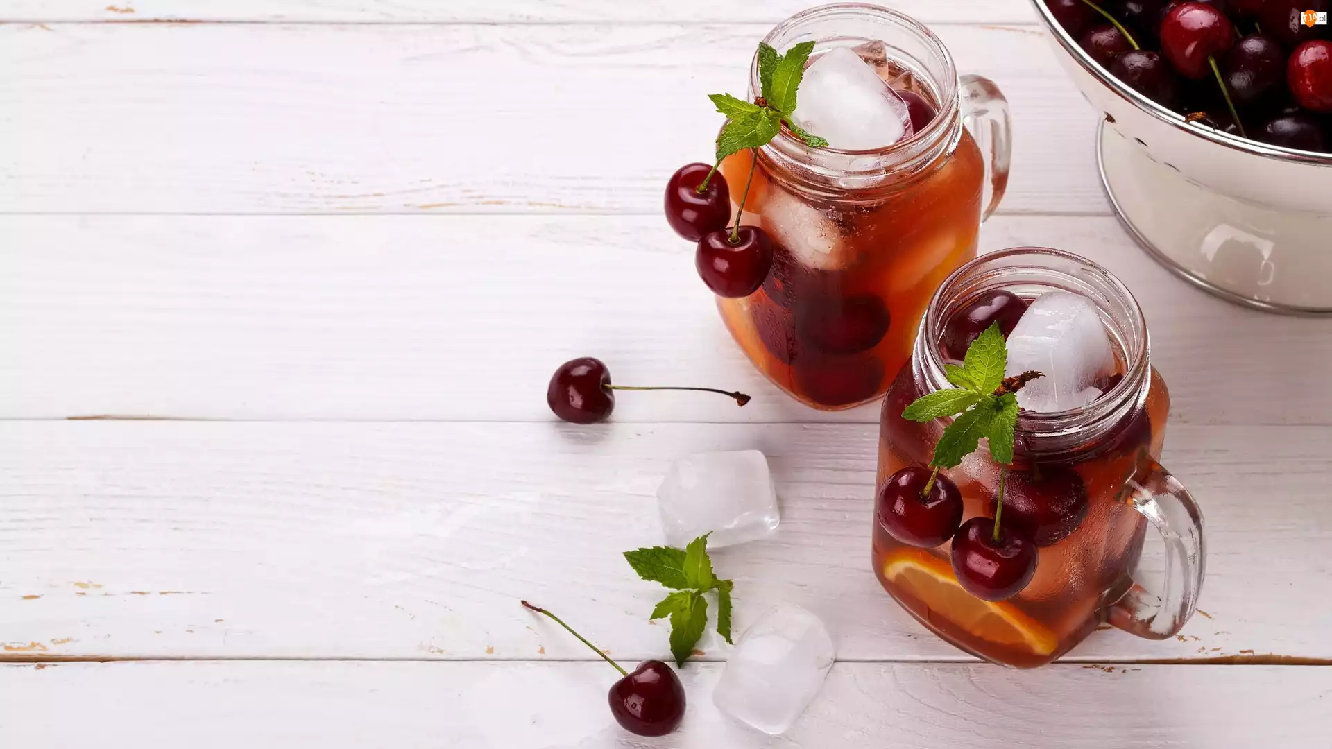 Słoiki, Napój, Miska, Lodu, Wiśnie, Kostki