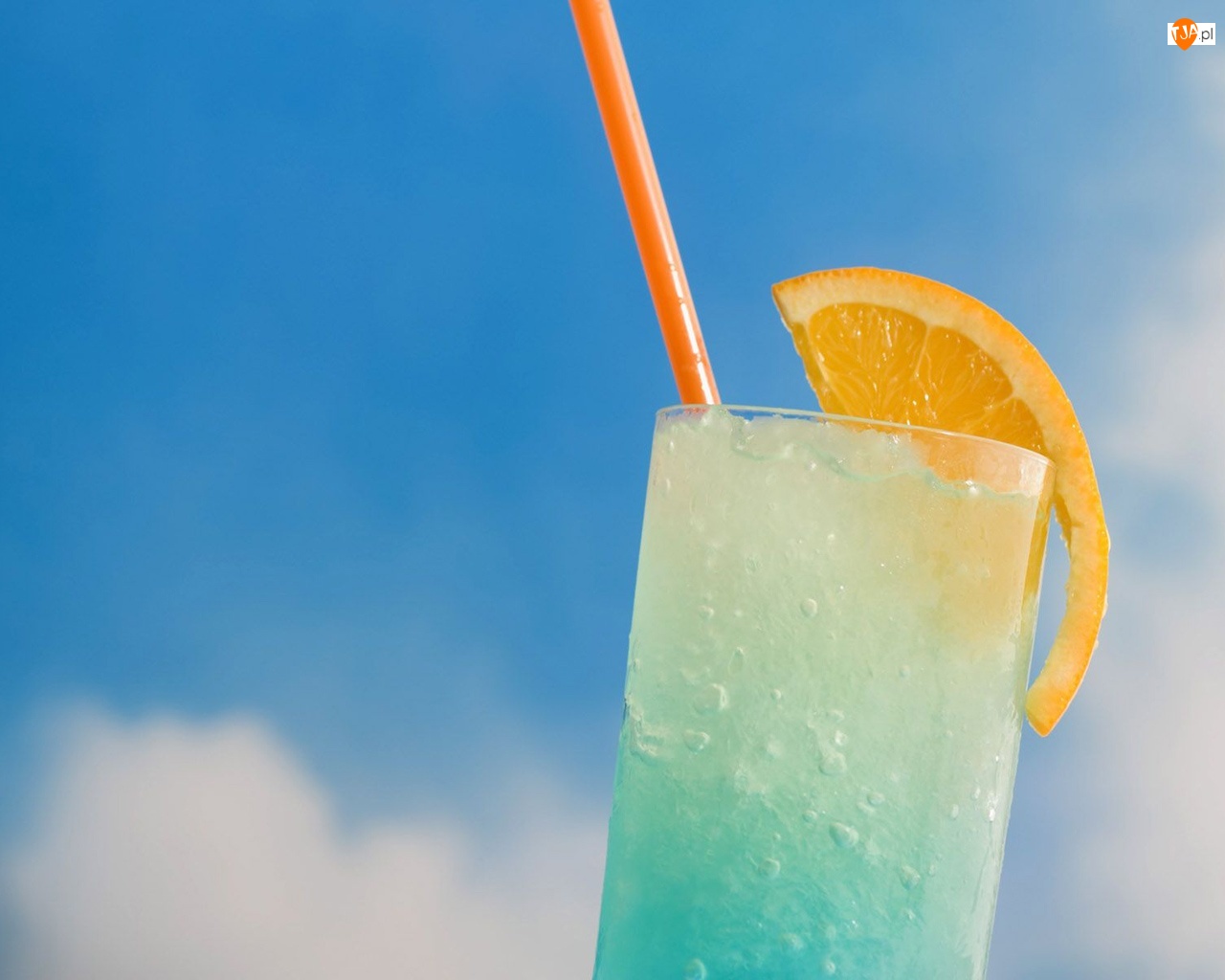 Słomka, Pomarańczy, Niebieski, Lód, Drink, Plasterek
