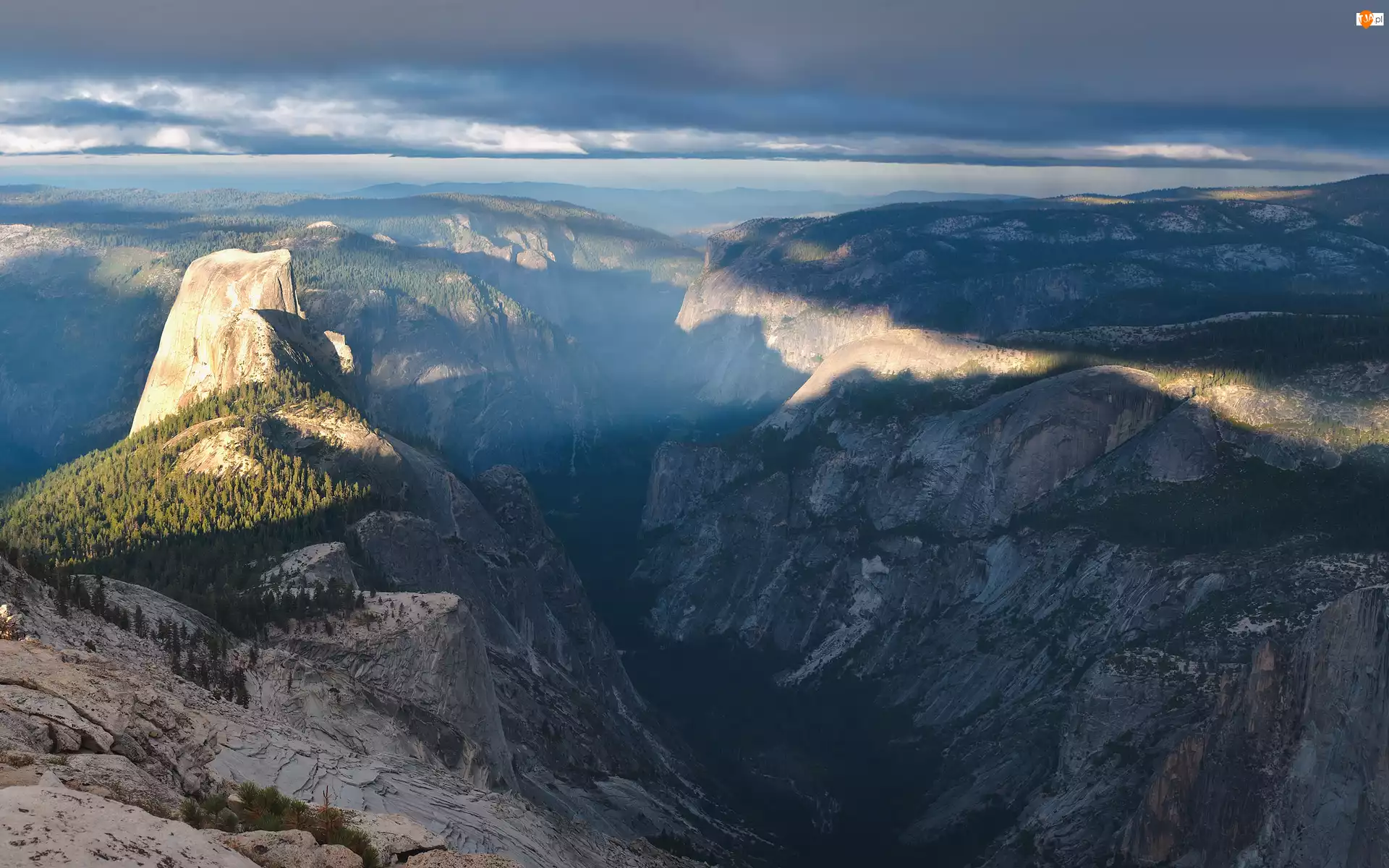 Kwiaty, Promienie, Góra, Słońca, Skałki