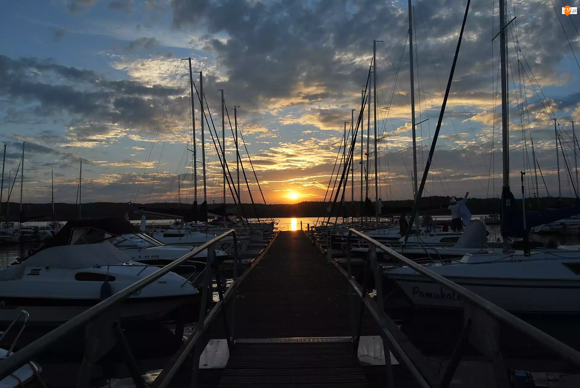 Słońca, Jezioro Charzykowskie, Jachty, Przystań, Zachód