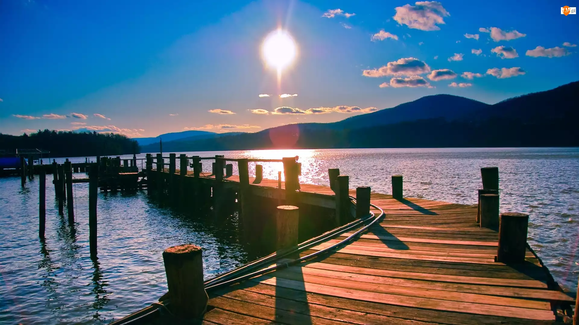 Słońca, Jezioro, Góry, Pomost, Promienie