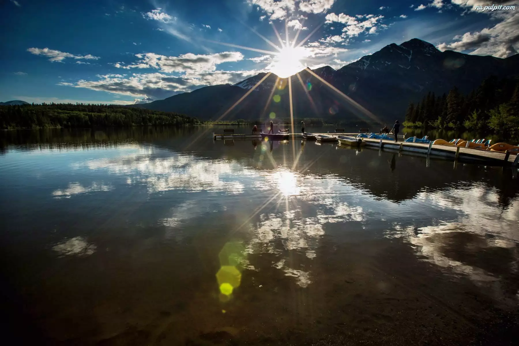 Słońca, Jezioro, Góry, Pomost, Wschód