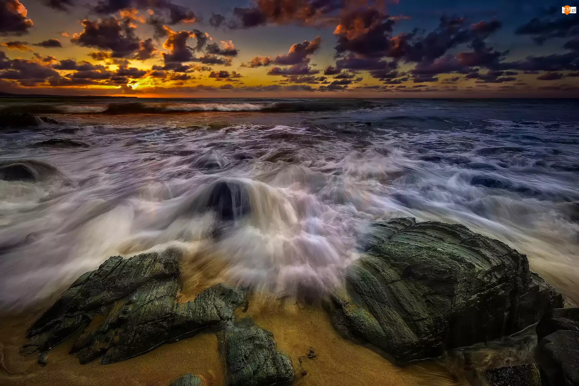 Słońca, Kamienie, Brzeg, Morze, Zachód