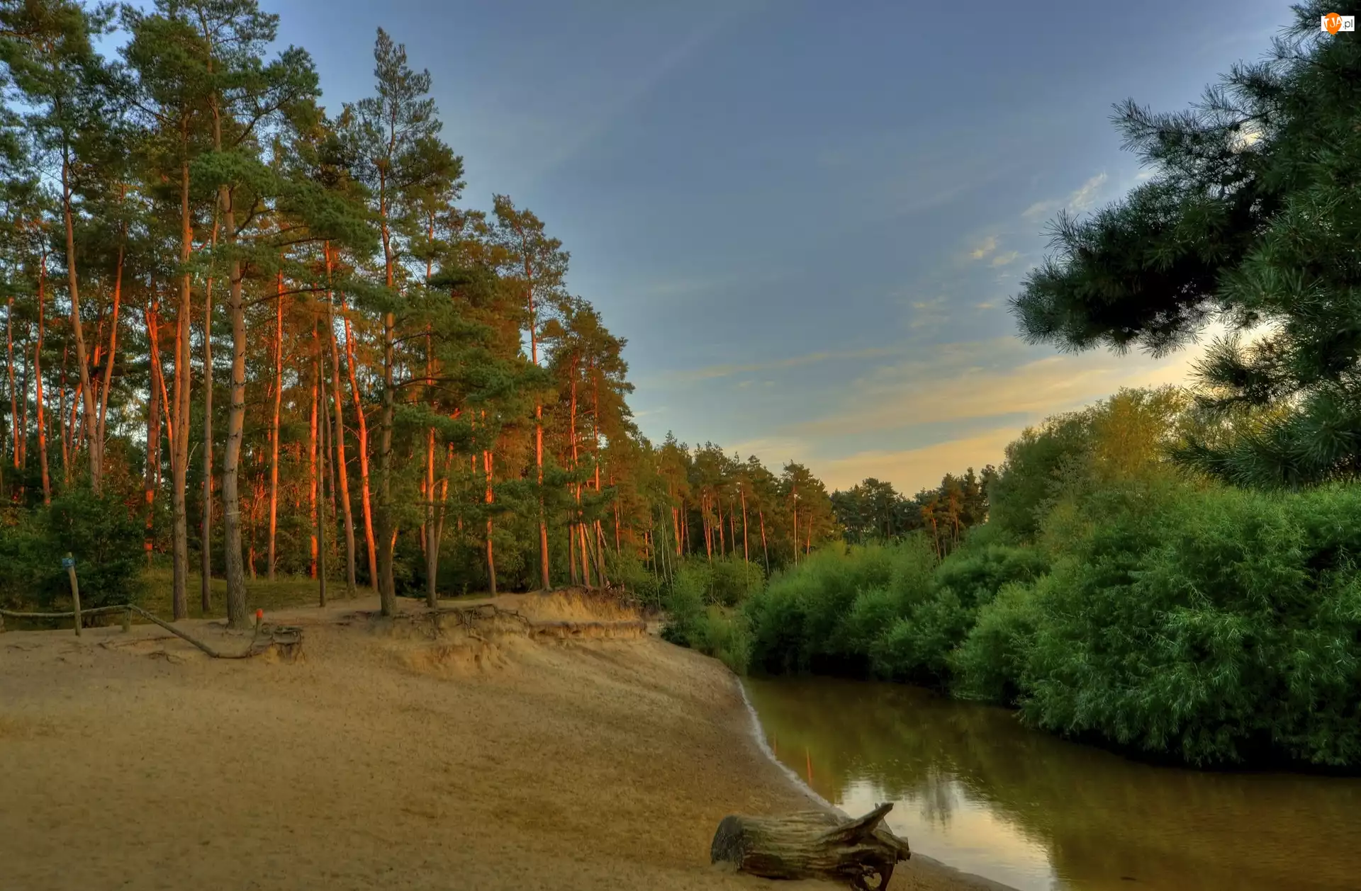 Słońca, Lato, Rzeka, Las, Zachód