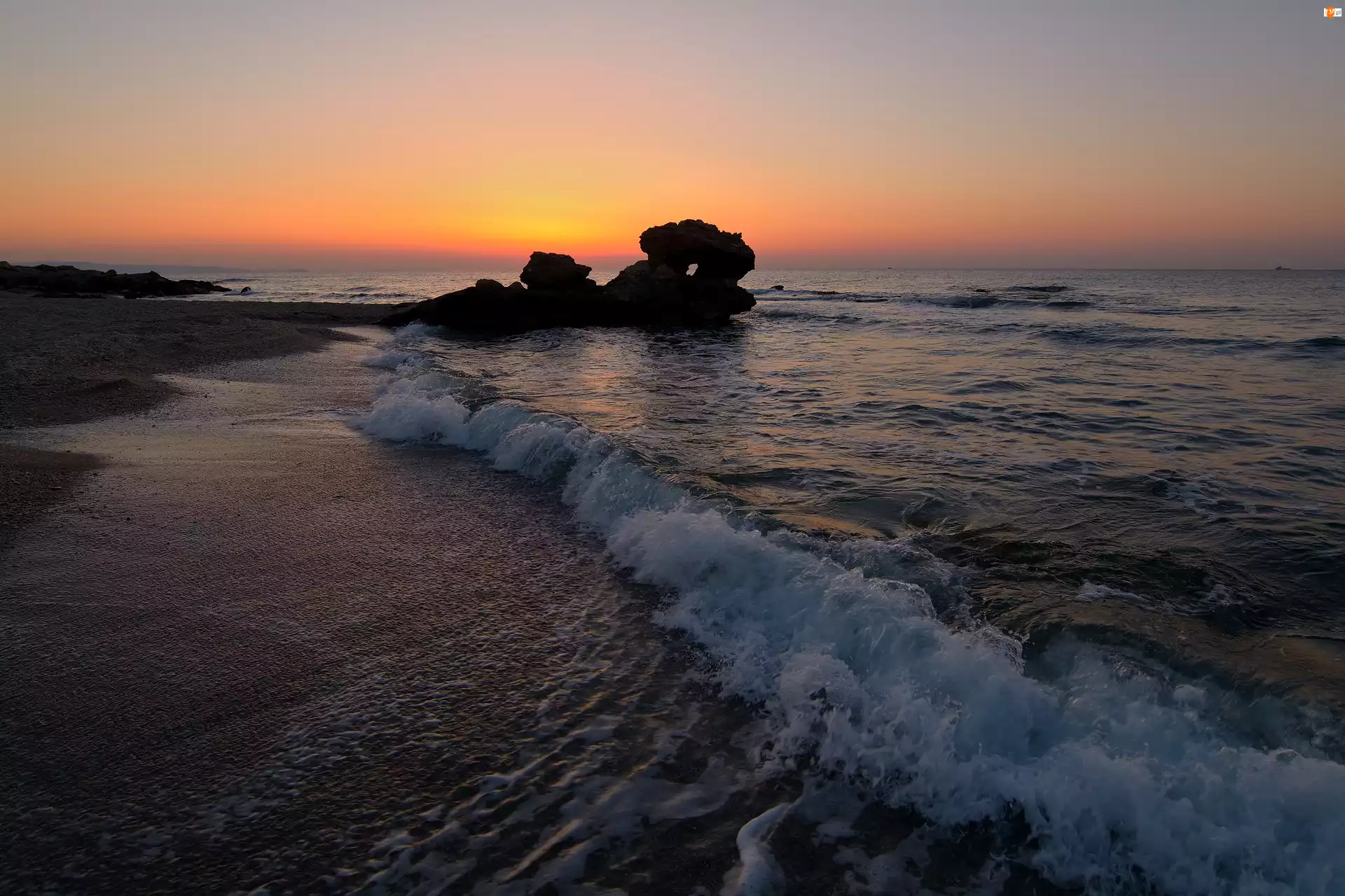 Słońca, Morze, Skałki, Fale, Zachód