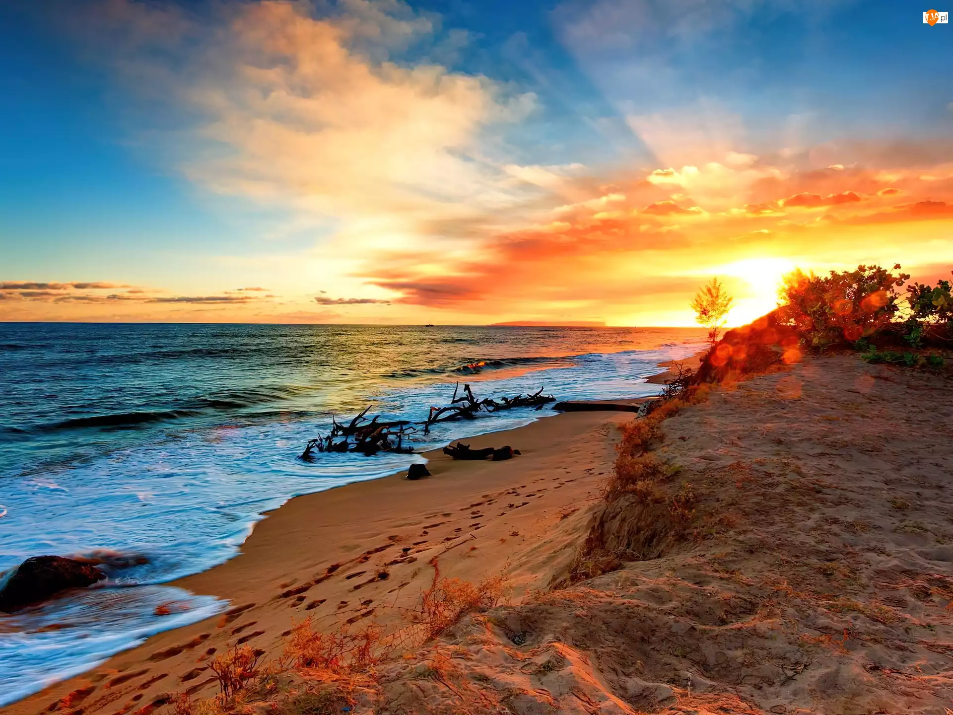 Słońca, Morze, Wydmy, Plaża, Zachód