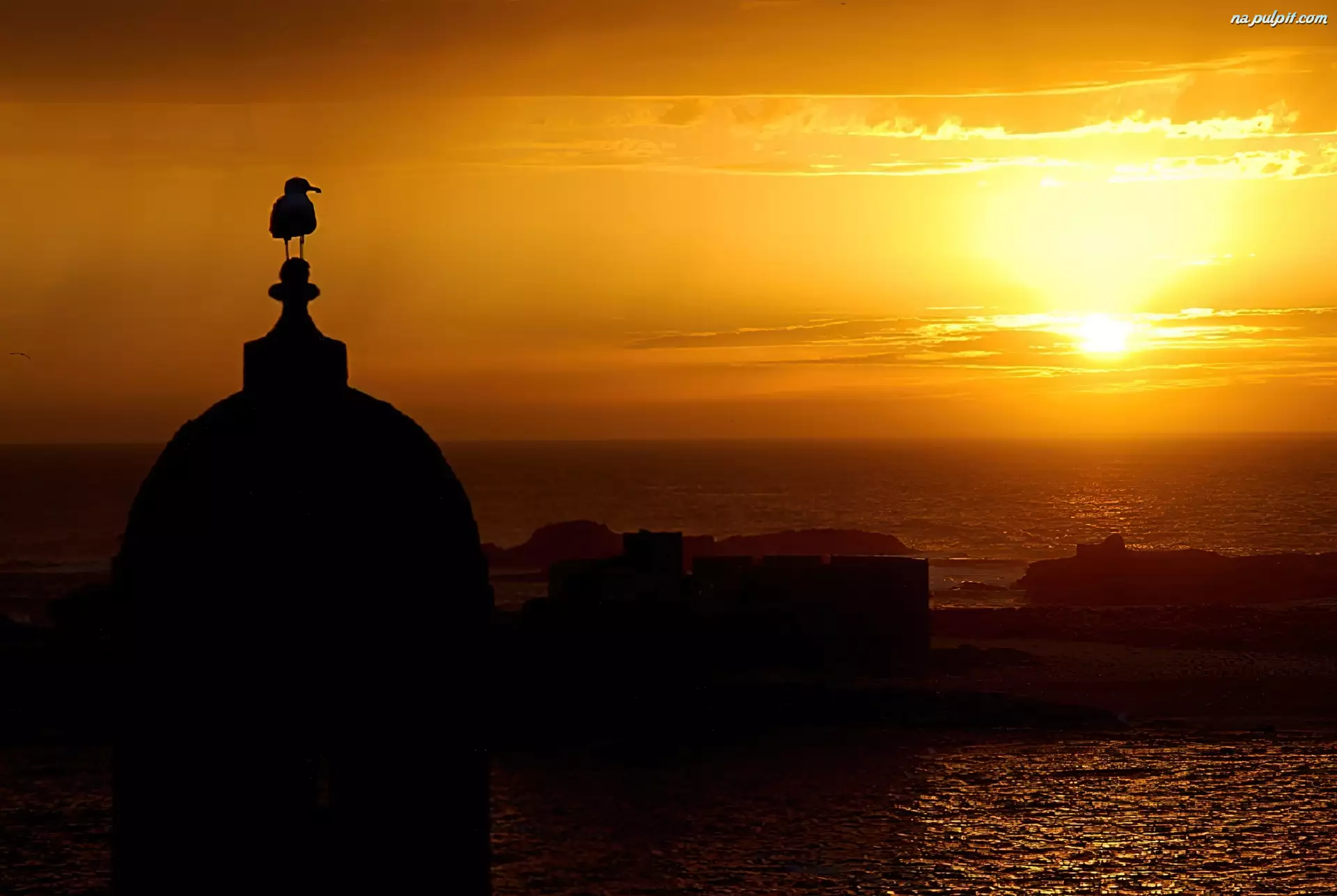 Słońca, Na, Morze, Dachu, Zachód, Ptak