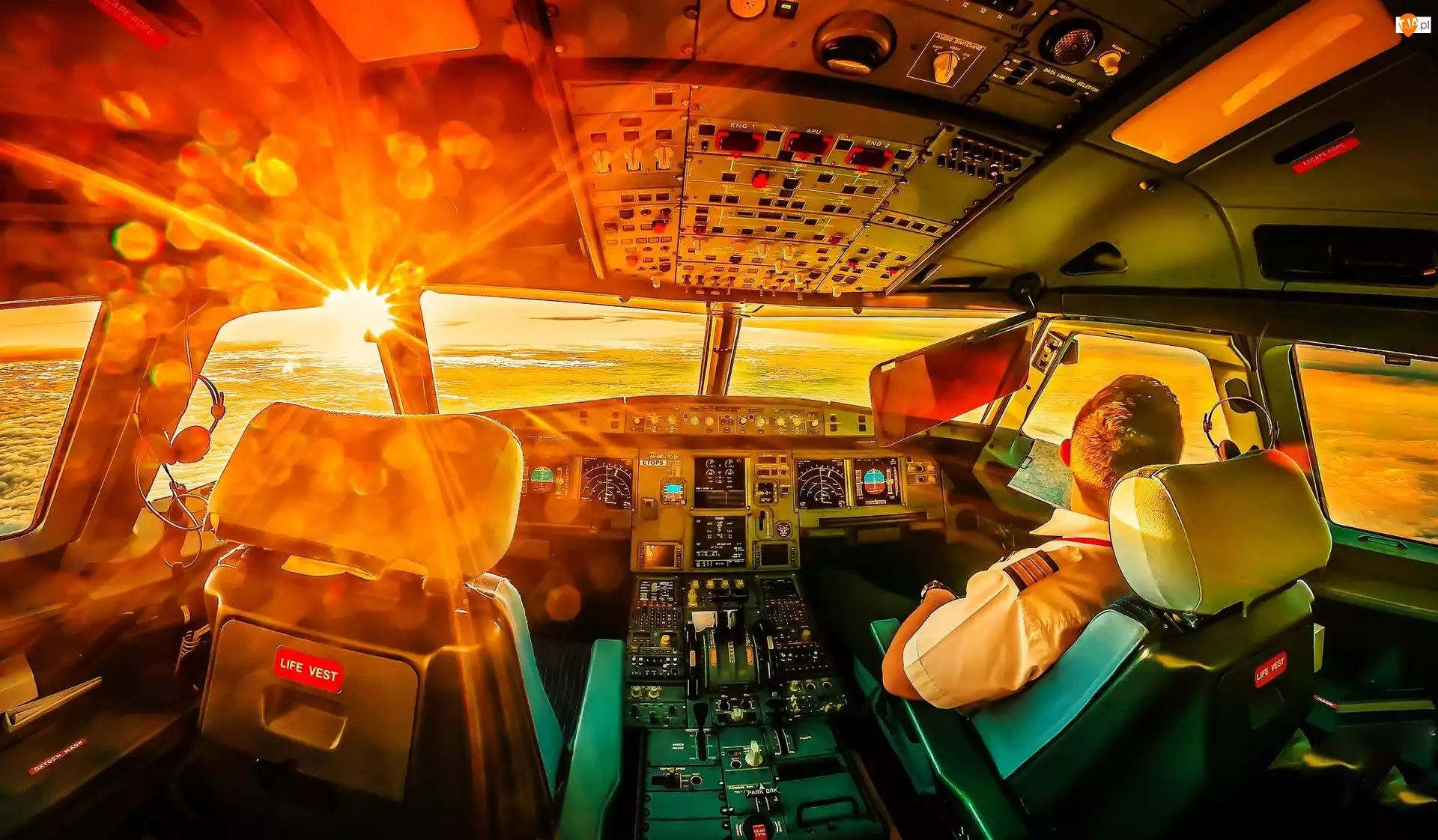 Słońca, Samolot, Pilot, Kabina, Promienie