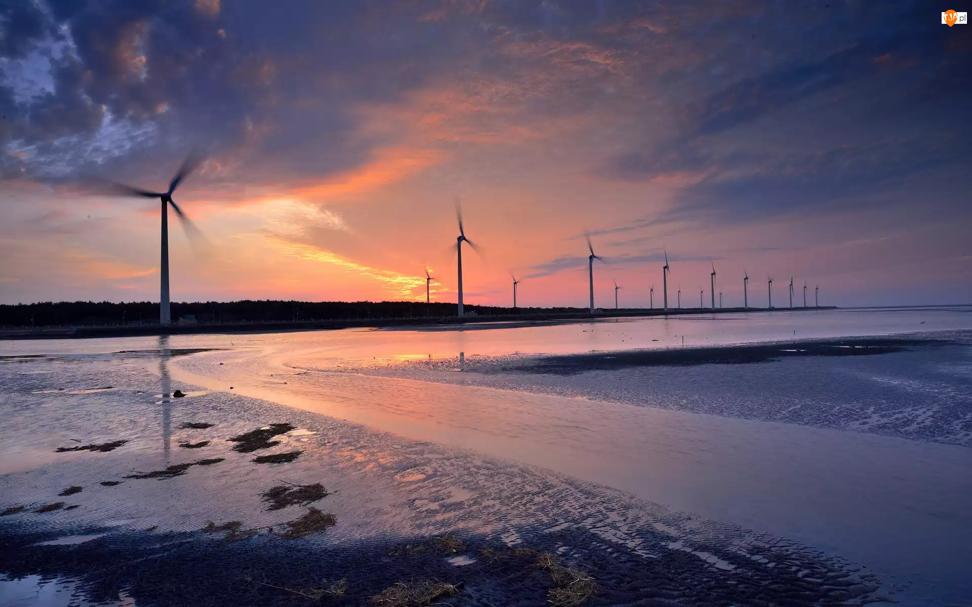 Słońca, Wiatraki, Lasy, Rzeka, Zachód