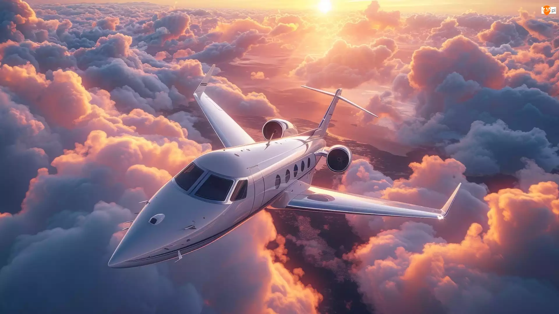 Słońce, Samolot pasażerski, Niebo, Chmury