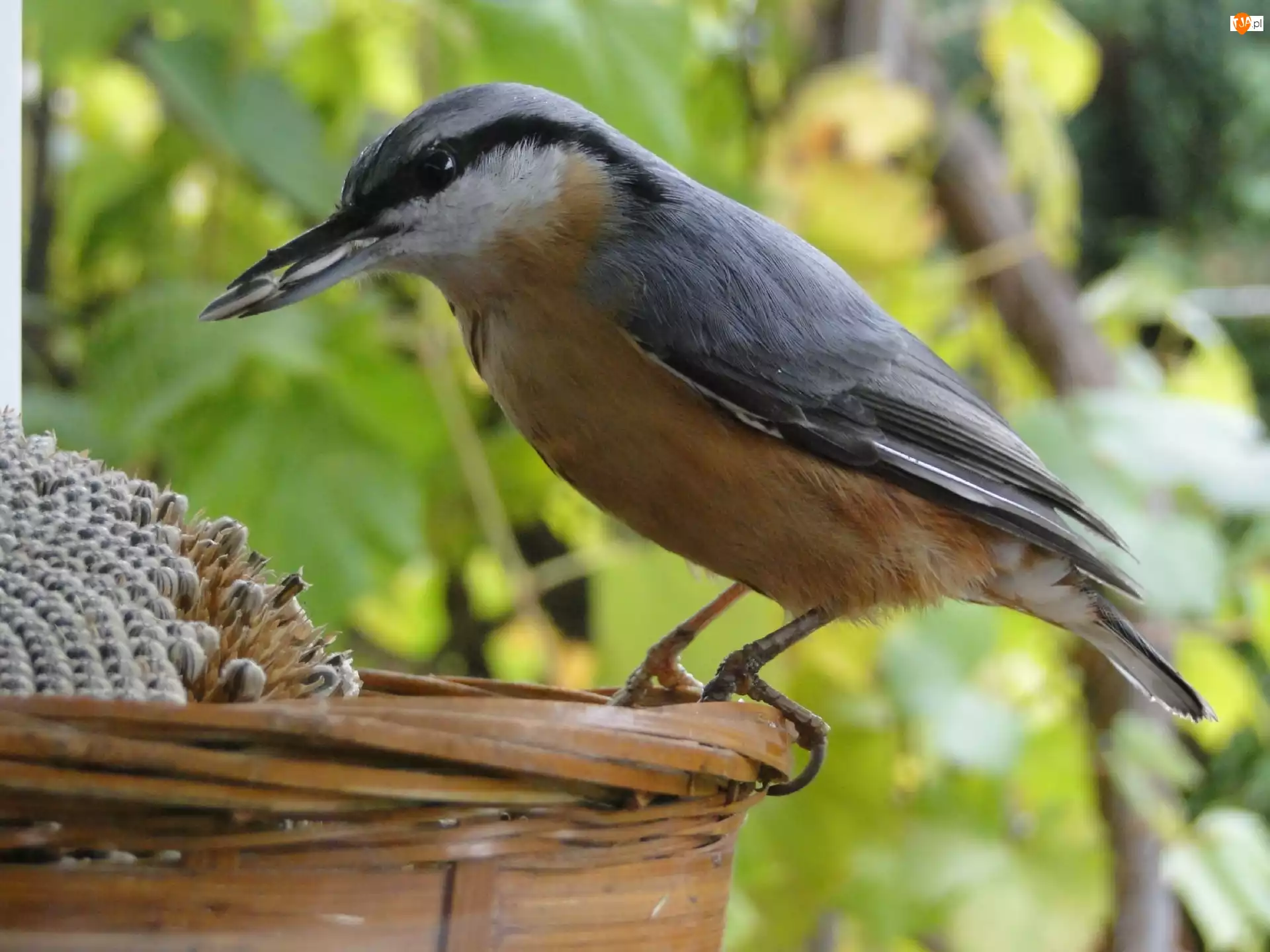 Słonecznika, Ładny, Kosz, Ptaszek, Nasiona