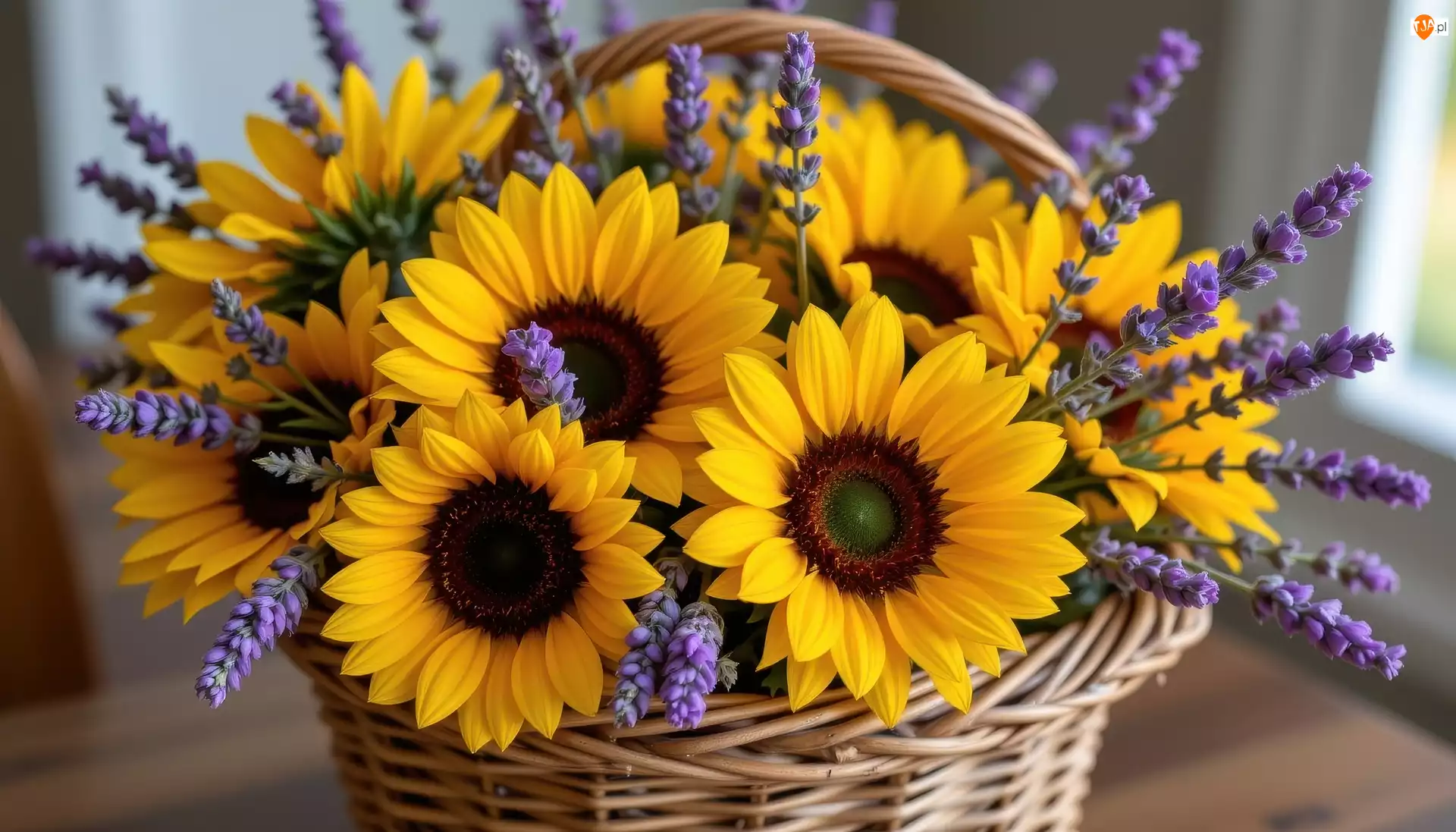 Słoneczniki, AI, Lawenda, Kwiaty, Koszyk